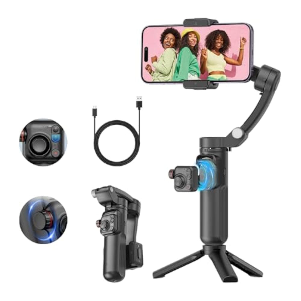 ?Lightweight Compact?: Phone Gimbal Weighs Only 0.83 Pounds, And Is Designed In A Foldable Form For Easy Storage And Light Loading. The Gimbal Can Be Compatible With Mobile Phones With A Width Of 49Mm~88Mm, And The Maximum Load Is About 260G, Which Is Suitable For All Iphone Series. | | ?Stable And Anti-Shake?: Adopts Latest Generation Of Gimbal Stabilization Technology, Which Has Excellent Anti-Shake Strength, And The Picture Is Still Stable And Smooth When Shooting In Motion. | | ?Gimble Show App?Offers A Variety Of Shooting Templates For All Your Filming Needs. With Features Like Spin, Timelapse, Dynamiczoom, Panorama, Cloneme Pano, Story Mode, And More. Plus, This Tripod Has Been Upd To Automati
