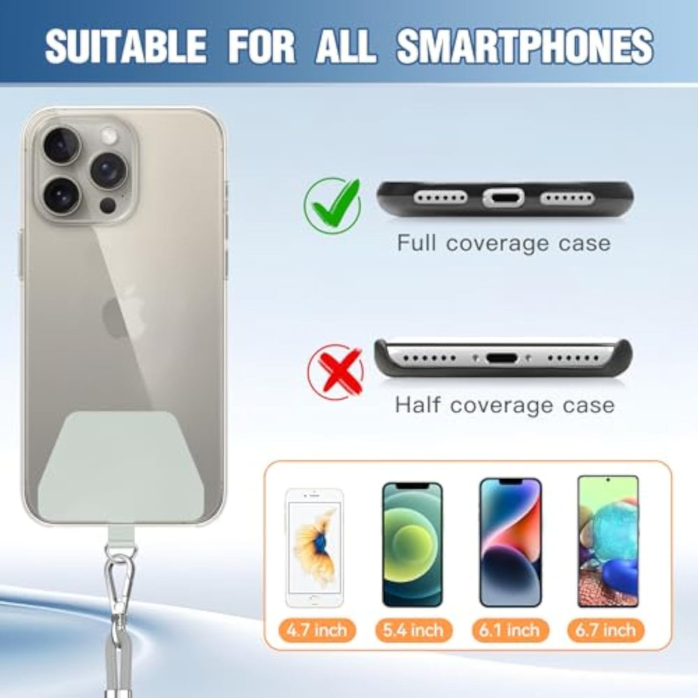 Crossbody Neck Phone Lanyard: Adjustable Cell Phone Charms Made Of Nylon With Detachbale Metal Buckle, Retractable Length Allows Phone Lanyard Be A Crossbody Phone Strap Or A Neck Strap Arount The Neck. | | Compatible With All Mobile Phones: 2X Durable Transparent Pads Are Suitable For A Full Coverage Phone Case, Assembly In Seconds And Keep Phone Crossbody Or Arround The Neck. | | Keep Your Phone Safe: Crafted From Sturdy Polyester, After Undergoing Numerous Product Tests, This Sustainable Fabric Has Proven To Be Resilient Against Even Forceful Tearing. Consequently, You Can Rest Assured That There Is No Need To Worry About Your Phone Suddenly Falling Out. | | Support Wireless Charging: Phone Lanyard With Phone Tether Pad, It Can Be Used With A Full Cover Case, Support Usb Charging And Fingerprint, Would Not Occluded The Charging Port And Camera. | | Widely Application: Phone Neck Strap Fits Phone, Work Permit, Student Card, Key Chain, Etc. It Can Keep Your Phone Accessible A.