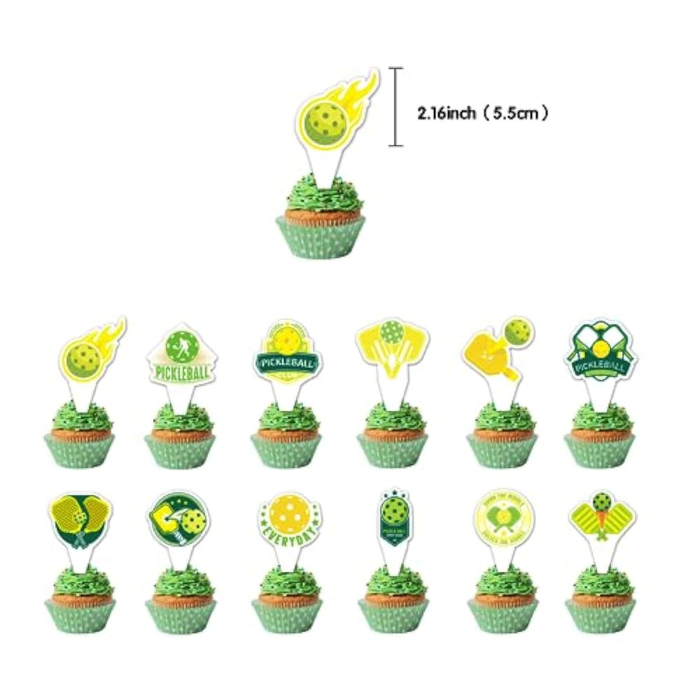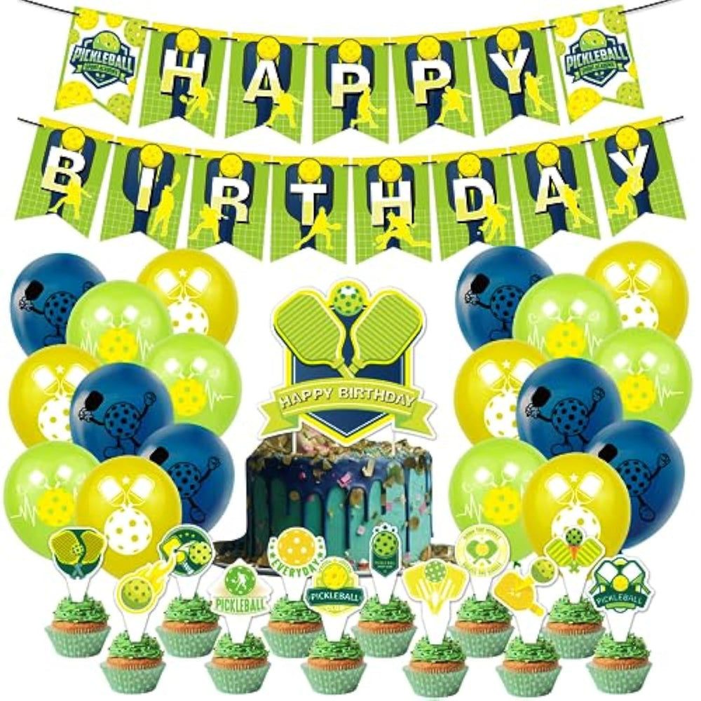 Celebrate in sporty style with this Pickleball Party Decoration Kit, featuring a pre-assembled birthday banner, cake topper, 12 cupcake toppers, 18 balloons, and a ribbon—everything you need for a fun pickleball-themed party. Made from high-quality cardboard and durable latex, the decorations showcase vibrant designs with rackets, athletes, and pickleball logos. Easy to set up and perfect for birthdays, sports events, or any pickleball celebration, this set brings energy, color, and a festive vibe to both indoor and outdoor gatherings.