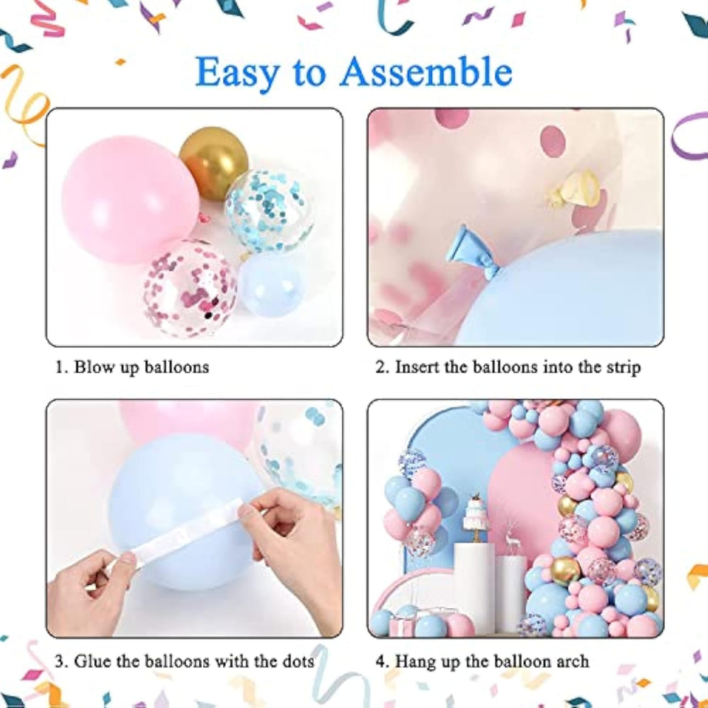 | Premium Quality Materials: Made From Grade A Quality Latex For Safe Use Around Children. | | Versatile Decor: Perfect For Gender Reveal Parties, Baby Showers, Weddings, And Other Celebrations. | | Large Quantity: Comes With 100 Pink And Blue Balloons In Various Sizes To Create A Festive Atmosphere. | | Easy Assembly: Includes A Roll Of 16Ft Garland And Glue Dots For Quick And Simple Setup. | | Secure Quality Assurance: We Stand Behind The Quality Of Our Balloons And Offer A Satisfaction . | |
