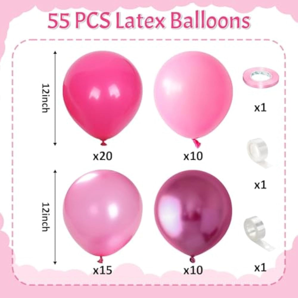 This pink balloon garland kit includes a mix of 12-inch light pink, hot pink, metallic, and pearl pink balloons, along with a balloon chain, glue dots, and ribbon for easy decorating. Perfect for birthdays, baby showers, weddings, or princess-themed parties, the rich shades of pink add elegance to any celebration. Made from non-toxic, durable latex, these balloons are safe for kids and designed to last. With simple assembly tools included, creating a stunning balloon arch or bouquet is quick, easy, and stress-free.