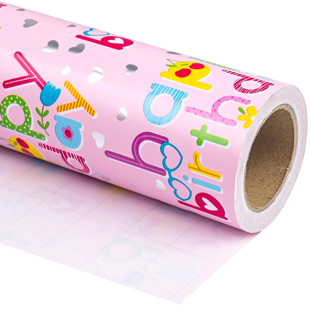 | Perfect Size: Each Roll Measures 17 Inches Wide X 16.5 Feet Long, Which Provides You With A Total Of 23.25 Square Feet Of Paper. It'S Perfect For Any Small Or Medium - Sized Gift And Is Also Very Convenient To Store. Birthday Design: Colorful "Happy Birthday" Lettering With Silver Foil Hearts Printed On The Pink Wrapping Paepr, Add A Touch Of Luxury And Cheerful. It Will Make Your Gift - Wrapping More Textured, Yet Special. Gridlines Design: Each One Features Gridlines On The Reverse Side, Which Ensure Straight And Precise Cuts, Allowing You To Create A Perfectly Wrapped Gift Every Time. No More Uneven Edges Or Messy Folds. Premium Quality: Created With High-Quality Paper Materials, Thick And Not Easily Tear Or Rip. Item Came With Shrink Film To Prevent Wrapping Paper From Scratches And Reduce Dust. Use All Occasions: Perfect For Girls Birthday, Baby Shower, Holiday, Christmas, Wedding, Mother Day And Other Special Occasions Gifts Wrap. It Can Also Be Used For Diy Craft Project And Other Artistic Inspirations.