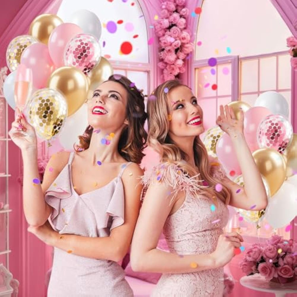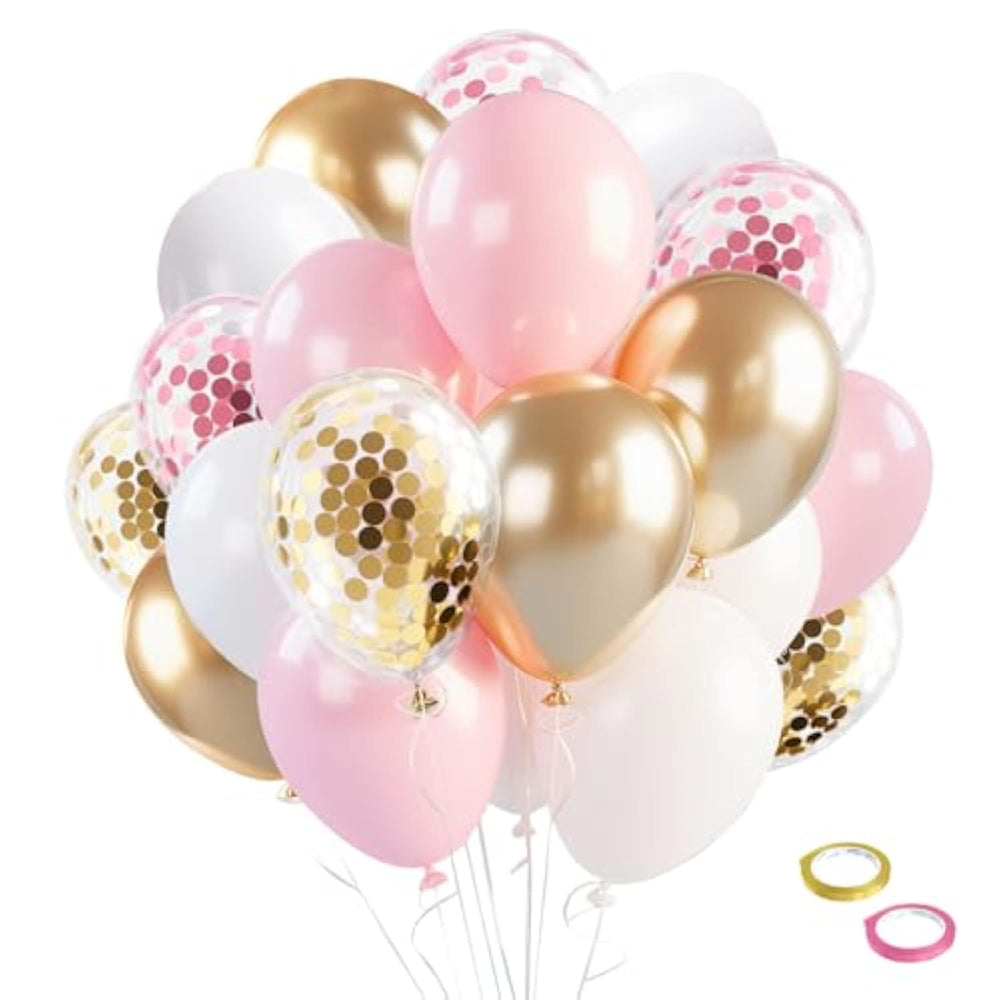 | Pink And Gold Party Decorations: Make Your Party Unforgettable With Our Pink, Metallic Gold, Confetti Balloons Set, Featuring 10 Light Pink, 10 Confetti-Filled, 5 Gold, And 5 White Balloons, Along With 2 Rolls Of Ribbon. Perfect For Birthday Decorations, Baby Showers Decorations, And More. These Balloons Add Vibrant Color And Fun To Any Celebration. | | Birthday Balloons For Women: Pink And Gold Balloons Are Made Of High Quality Latex Material For Durability. If You Tie Them Tightly, They Can Keep Air For Days. The Sizes Are Both 12 Inches, Making Them Perfect For All Occasions And Decorating Needs. | | Confetti Balloons: Easily Inflate Balloons With Helium Or Air. Rubbing And Shaking It On Your Hair Or Fabric Will Concentrate The Confetti On The Surface Of The Latex Balloons, Which Will Make It Look Prettier. | | Birthday Decorations For Women: Pastel Pink And Sparkly Gold And Special Confetti Balloons Are Suitable For Pink Themed Events In Such As Birthday Party For Women And Girls, Weddings, Gender Reveal Decorations, Graduation Party And Bachelorette Party And More.With Fringe Backdrop, Banners And Other Party Decorations Indoors And Outdoors As Photo Booth Props Are Very Great Idea For Princess Party. | |