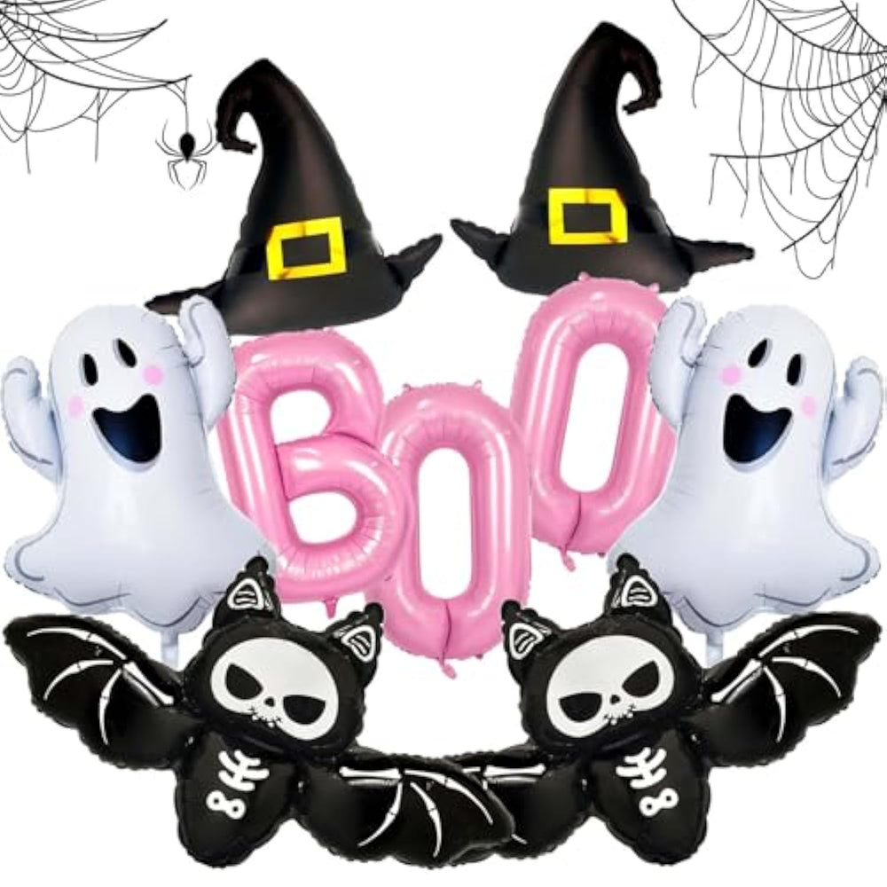 This Halloween balloon set features iconic designs including “BOO” lettering, ghosts, bats, and witch hat shapes, instantly setting a festive spooky vibe. Crafted from thickened foil, the balloons are durable, leak-proof, and reusable for multiple celebrations. The kit includes a straw and ribbon for quick, hassle-free setup in your home, office, or party venue. With a striking color palette of black, pink, and white, these balloons create an eerie yet stylish Halloween atmosphere that’s perfect for both creepy and cute party themes.