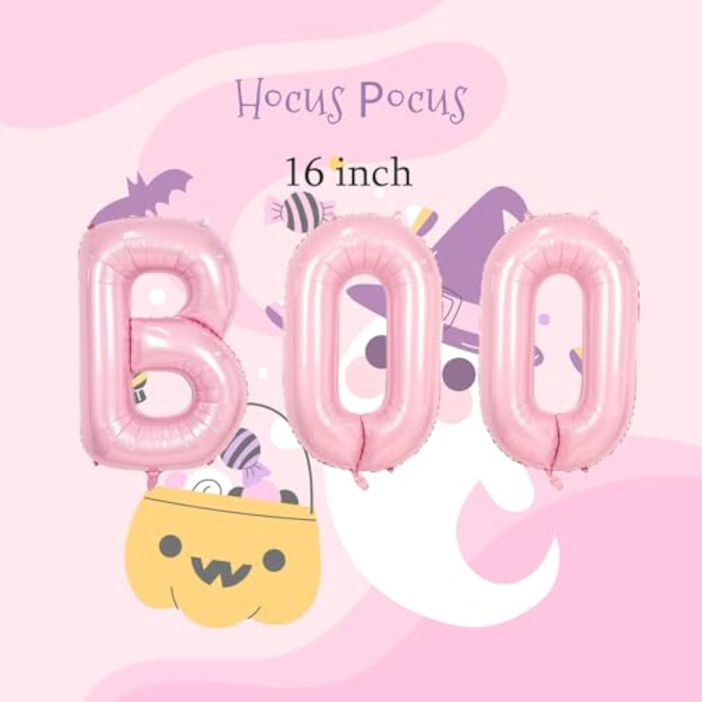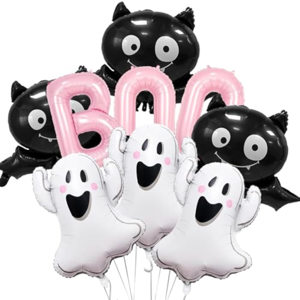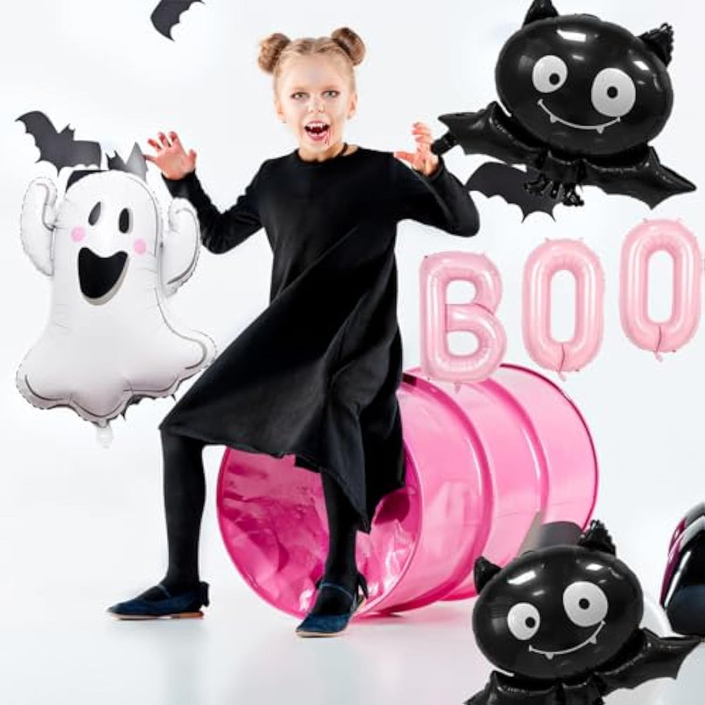 This set of pink Halloween foil balloons includes nine themed balloons: one 16-inch “BOO” letter balloon, three large ghost balloons (23.2 × 29.5 inches), and three black bat balloons (23.6 × 28.3 inches). Made from durable aluminum film, the balloons are lightweight, reusable, and resistant to breaking. Each features a self-sealing opening, eliminating the need for knots and making setup quick and easy. Perfect for Halloween events, masquerades, birthday parties, Little Boo baby showers, haunted houses, and spooky-themed celebrations, these balloons can be used as decorations, photo backdrops, or props. Hang them from ceilings, windows, or gardens to create a festive and cheerful atmosphere. These adorable ghost and bat balloons also make thoughtful holiday gifts, delighting girls, relatives, or friends with their charming design.