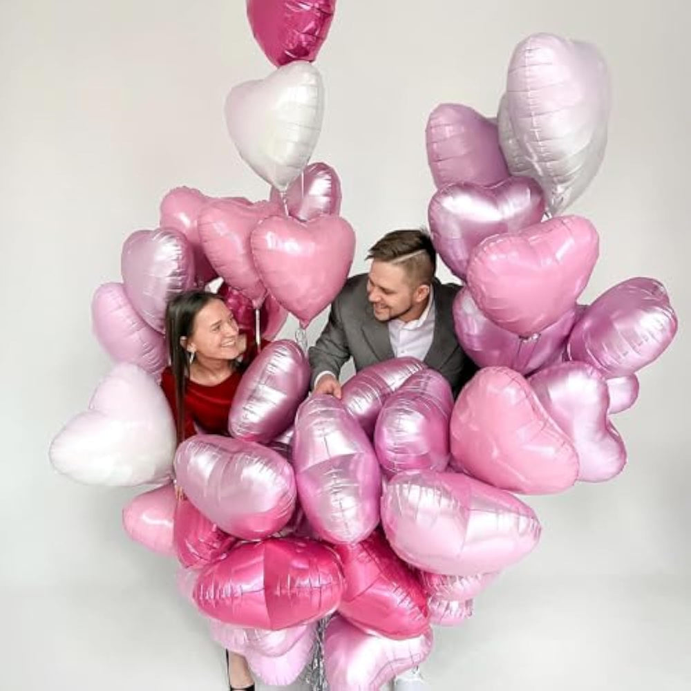10Pcs Heart Balloons:You Will Get 10Pcs 18Inch Pink Heart Balloons,Ribbon.The Pink Heart Shaped Balloons Suitable For Any Party, Can Leave Unforgettable Memories For The Guests Attending The Party, 18Inch Is Large Enough To Better Embellish Your Party. | Material:Our Aluminium Foil Heart Balloons Are Made With Good Quality Embossing Technology, With Neat Edges, Not Easy To Explode And Leak, Non-Toxic And Odourless, With Vibrant Colours, Ideal For Any Decoration. Suitable For Inflating With Helium Or Air, After Filling With Helium, Pinch The Inflation Port Of The Heart Balloon To Seal It. | Easy To Use:These Helium Heart Balloons Can Be Filled With Air Or Helium And Inflated Up To 90% To Prevent Them From Getting Too Big And Exploding. The Set Comes With A Straw And Ribbon, After The Party Is Over, Use The Straw To Deflate By Inserting It Into The Inflation Port, Balloons Can Be Reused | Widely Application:Our Pink Heart Shaped Valentine'S Day Balloons Are Great For Many Occasions Including Boys And Girls, Men And Women'S Birthday Parties, Valentine'S Day Decorations, Baby Shower, Marriage Proposals, Bridal Shower Parties, Anniversaries, Wedding Indoor And Outdoor Decorations, Photo Shoot Backdrops And Other Events. | Warm Tips:Due To Batch Problems, Some Of The Balloon Color May Have A Slight Color Difference, Is A Normal Phenomenon, Please Prevail In Kind Received. At The Same Time, Please Do Not Over-Inflate The Polyester Film Balloon Or Rub The Balloon With Sharp Objects To Avoid Balloon Explosion. |