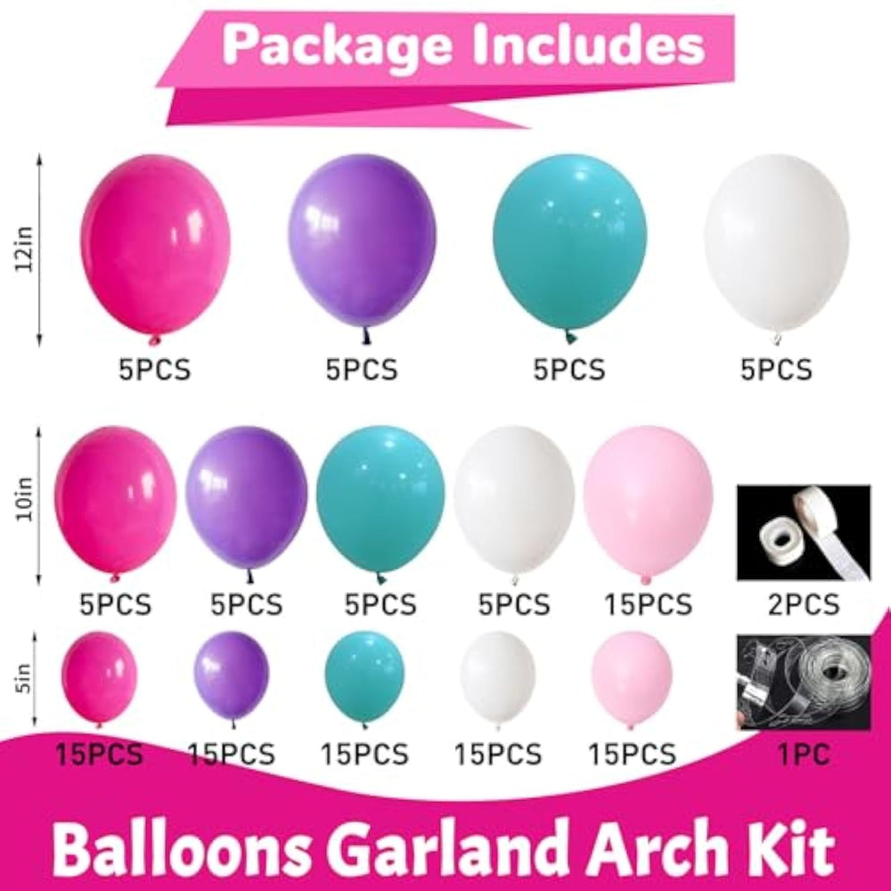 Pink Purple Blue White Balloons Garland Arch Kit: Includes Hot Pink Balloon(12 In, 5 Pcs; 10 In 5 Pcs; 5 In, 15 Pcs), Matte Purple Balloons (12 In, 5 Pcs; 10 In 5 Pcs; 5 In 15 Pcs),White Balloon(12 In, 5 Pcs; 10 In, 5 Pcs; 5 In, 15 Pcs), Teal Balloon (12 In, 5 Pcs;10 In 5 Pcs; 5 In 15 Pcs), Pink Balloon(10 In, 15 Pcs; 5 In, 15 Pcs) | Wide Application: The Globos Para Fiestas For Magic Theme Party Decorations, Doll Cute House Party Decorations For Girls, Mermaid, Baby Shower, Retirement, Wedding, Birthday, Halloween Party Supplies, Christmas, Summer Decor, Girls, Kids Etc | Thick Material: Our Globos De Cumpleaños Are Crafted From Thick, Non-Toxic Latex, Ensuring They Maintain Their Shape And Vibrant Colors For An Extended Period After Inflation; Elevate Your Party With Our Vibrant Birthday Baloons Ideal For Birthdays And Game Nights | Easy To Use : These Kids' Party Balloons For Birthday Party Can Be Easily Inflated With Air Or Helium; Blow Them Up With A Mouth, Pump Or Helium; If You Want Them To Float, Make Sure To Fill Them With Helium; We Provide Balloon Dots And Balloon Chains To Help You Creat Various Video Game Balloon Garland Kit | Warm Tips: Please Avoid Exposing Birthday Balloons To Direct Sunlight Before Use To Avoid Affecting The Quality And Life Of The Balloons Bulk; During The Inflation Process: Please Inflate The Globos Into A Round Shape To Prevent The Helium Balloons Game From Bursting; Choking Hazar: Adult Supervision Is Required; Keep Uninflated Assorted Balloons Away From Children |