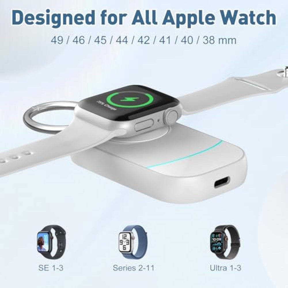 | ?Compatibility And Perfect For Any Scenario?Designed For Apple Watch Series 10 9 8 Uitra 7 6 5 4 3 2, Se, Ultra 2, 49/46/45/44/42/41/40/38 Mm. This Charger Is Ideal For A Variety Of Scenarios, Including Business Trips, Vacations, And Everyday Use. Whether You'Re Commuting, Exercising, Or Traveling. | | ?Convenient And Easy Operation?Operating This Charger Is Simple And Intuitive. Press The Power Button Once To Turn It On, And Double-Press Quickly To Turn It Off. This User-Friendly Design Ensures Effortless Control, Making It Easy To Charge Your Watch Anytime And Anywhere. | | ?1.5-3 Times Full Charged?For Apple Watch Charger Features A Robust 2500Mah Battery Capacity, Providing Ample Power To Charge Your Watch. It Can Charge Your Watch Completely 1.5 To 3 Times, Depending On The Model. This Compact And Portable Charger Ensures Your Watch Remains Powered Throughout The Day. | | ?Usb-C Charging Interface And Quick Recharging?Featuring A Usb-C Charging Interface. Recharge The Charger Itself In Just 2-3 Hours, Making It A Convenient Choice For Busy Lifestyles. It Delivers A Maximum Input Power Of 10W, Ensuring Fast And Efficient Charging. The Advanced Design S Compatibility With Modern Charging Standards While Prioritizing Safety. | | ?Stable And Safe Charging Protection?It Charges Your Watch In Just 1-3 Hours. With A Maximum Output Power Of 2.5W, It Delivers A Safe And Steady Charge. It Features Built-In Charging Protection To Prevent Overcharging, Overheating, And Short Circuits, Providing Peace Of Mind While Maintaining The Longevity Of Your Device. A Must-Have Accessory For Apple Watch Owners. | |