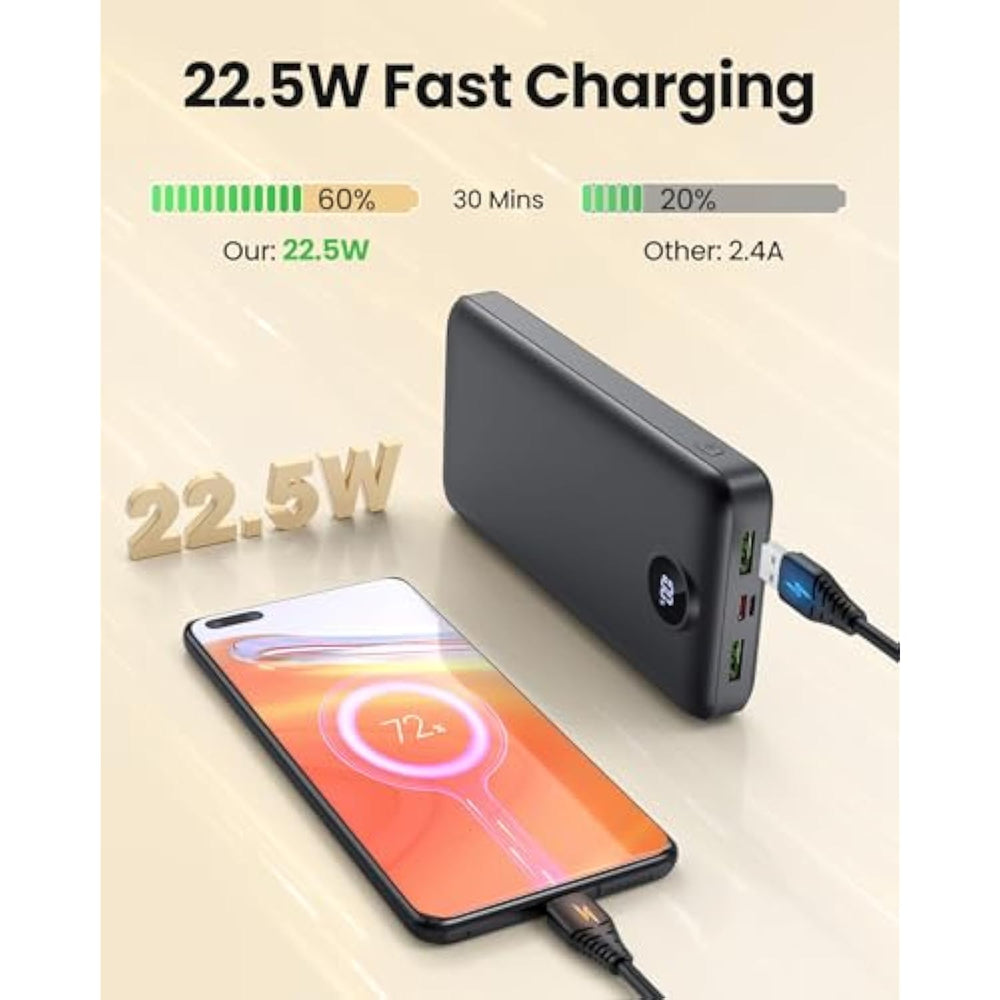 | 27000Mah Power Bank, Powerful Capacity: This 27000Mah Power Bank Can Charge An Iphone 15 Up To 8 Times, Provide Approximately 5.3 Charges For A Samsung S23, And More Than 3 Full Charges For An Ipad Mini. Whether You'Re On A Long Journey, Enjoying Outdoor Adventures, Or Setting Up Emergency Backup At Home, This Power Bank Is Your Reliable Partner During Natural Disasters, Ensuring Ample Power In Critical Situations | | 22.5W Fast Charging: Equipped With The Latest Upgraded Chip, This Power Bank Supports A Maximum Output Of 22.5W And An Input Of 18W. It Can Recharge Your Phone To 60% In Just 30 Minutes. Compared To Traditional Power Banks, Its Charging Speed Is Three Times Faster, Adding Convenience To Your Efficient Lifestyle | | Multi-Port Design For Shared Power: Featuring Usb C Port (Supporting Both Input And Output) And Two Usb Ports, You Can Charge Up To Three Devices Simultaneously With Family And Friends, Ensuring You Never Have To Worry About Running Out Of Power. It Is Compatible With A Wide Range Of Electronic Devices, Including Smartphones, Tablets, Mini Speakers, Bluetooth Headphones, Cameras, And Handheld Gaming Consoles, Satisfying All Your Charging Needs | | Led Display And Multiple Safety Protections: The Power Bank Features A High-End Design Combined With An Intelligent Led Digital Display, Allowing You To Monitor The Remaining Battery Life In Real-Time. It Is Built With Three High-Quality Lithium Polymer Batteries And A Multi-Layer Safety Protection System To Ensure Comprehensive Safety For Both You And Your Devices, Providing Peace Of Mind During Use | | What You Will Receive: The Includes 27000Mah Power Bank, Usb C Charging Cable, And A User Manual, Along With 18 Months Of