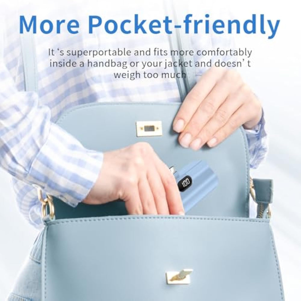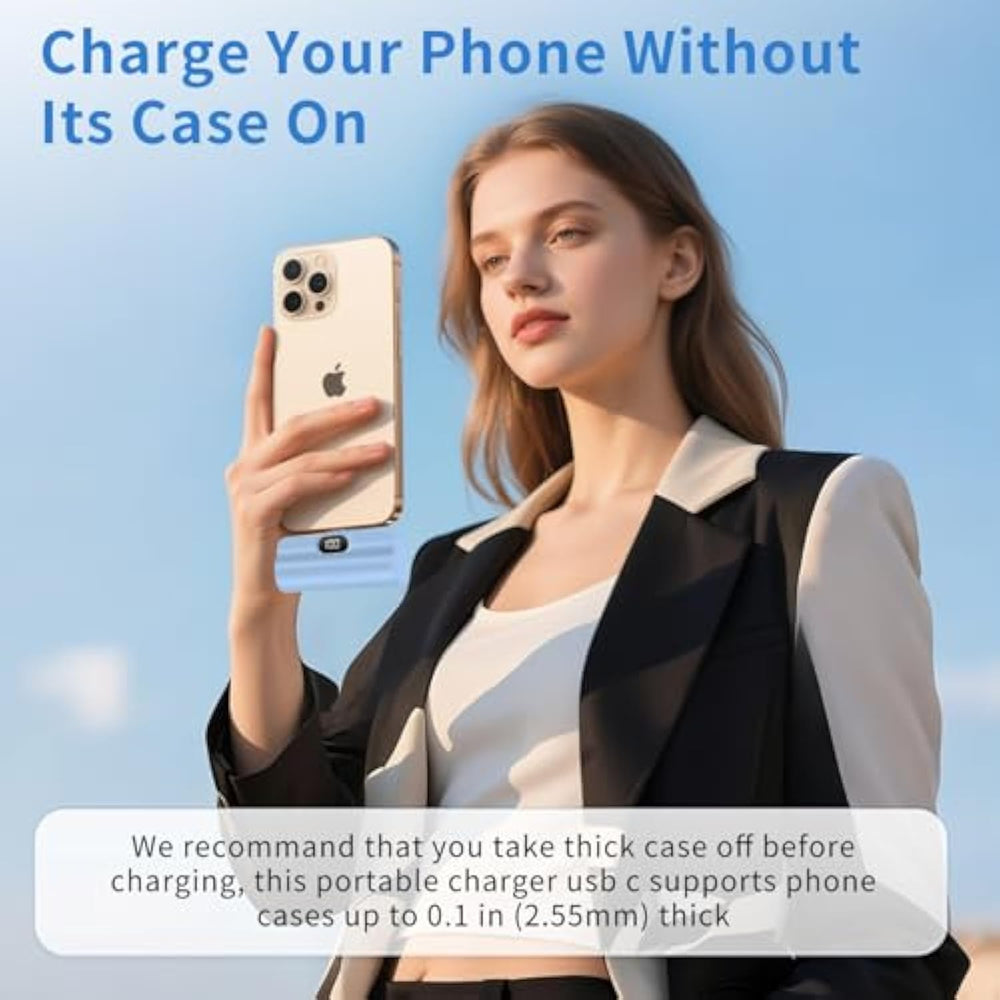 | Fast Charging Speed: Built-In 22.5 W Usb-C Connector, Portable Charger Usb C Manages To Provide A 5000 Mah Boost Of Battery To Fuel Up Your Phone At Once. Please Recharge This Mini Portable Charger Fully Before Initial Out-Of-The-Box Use | | Pocketable Size Design: This Mini Power Bank Is Ultra-Compact Enough That It’Ll Fit In Your Pocket Or Purse Without You Noticing It, It Eliminates The Need To Carry An Extra Cable, Plugs Directly Into Your Phone | | Superior Safety: Built-In Usb-C Port, Mini Portable Charger Meets Usb-If Strict Certification Standards For Compliance To Protect Your Devices And Ensure The Fastest Charging And Data Speeds | | Wonderful For Personal Or Shared Use: This Small Portable Charger Is The Impeccable Pocket Companion To Keep You Going Through Busy Digital Living, Without Added Bulk | | What You Get: 2 X Usb C Portable Charger, 1.6 Ft (50 Cm) Usb To C Cable, User Manual. If You Use A Thick Case, It Would Be Better To Remove It Before Your Charging | | Note: 5,000Mah Pack Is Tailored To Have On Hand For Top-Offs Or While On The Go, But It Isn'T Large Capacity Enough For Repetitive Recharges Without The Unit Being Charged Up Either. Just In Case Of An Emergency, Making It An Awesome Solution For You | |