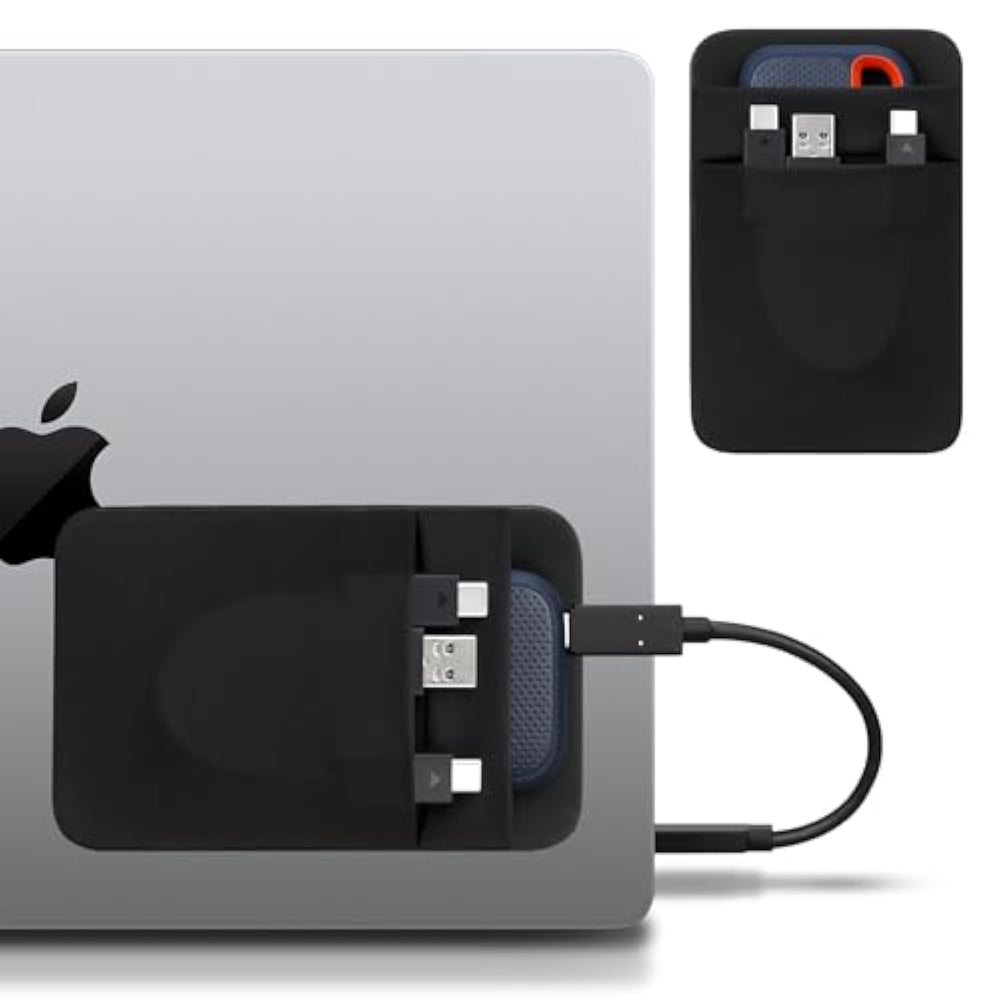 | External Storage Ssd Sleeve For Laptop: Two Pocket Design For More Storage, Add A Cable Insert Location, This Hard Drive Holder For Laptop Suitable For Most Universal External Solid State Drive Ssds Such As San Disk Extrem / Extrem Pro, Samsung T7 Shield / T7 / T9, Crucial X9/X10 Pro Portable Ssds Or The Wd_Black And Seagate Expansion Card. | | Reusable Traceless Strong Sticky Adhesive: We Use The High Quality 3M Reusable Adhesive Pad Which Sticks Firmly To The Surface Of The Laptop, Will Not Easily Fall Off, And Won’T Leave Annoying Glue Residue, Rest Assured That Keep Your Laptop Clean And Secure. At The Same Time, You Can Effortlessly Take Down And Re-Attach The Ssd Portable Stick Holder Until You Find A Spot That Works For You | | Keep Your Ssd At Your Finger Tips: This Ssd Laptop Holder Can Be Attached To Your Laptop, Macbook, Ipad, You Can Put Your Portable Ssd, Usb Hubs, Charging Cables, Card Reader, Magic Mouse, Earbuds, Airpod Or Airtag In This Adhesive Pocket Of The Laptop. After That, You’Ll Never Forget Your Laptop Accessories At Home Again. | | Dimensions: 5.1'' X 3.4'' X 0.17'': The Hard Drive Pouch Holder Sleeve Is Incredibly Thin And Lightweight, A Perfect Storage Way For Users Who Prioritize Portability Without Adding Extra Bulk To Their Devices. Flexible Elasticity And Rebound Allows Various Device Whether It'S Thin Or Thick, The Ssd Stick On Sleeve Will Hold The Your Hard Drive Ssd Securely In Place, Not Easy Slip Out. | | 2-Pocket Stick On Pouch: Just Open The Package, Clean The Surface Of The Laptop Or Tablet And Stick On The Ssd External Hard Drive Sleeve. No Need To Rummage Through Your Bag To Find Your Usbs And Cables Now. Please Note That Too Frequently Removing And Re-Attaching The Adhesive Pocket May Weaken The Adhesive. | |