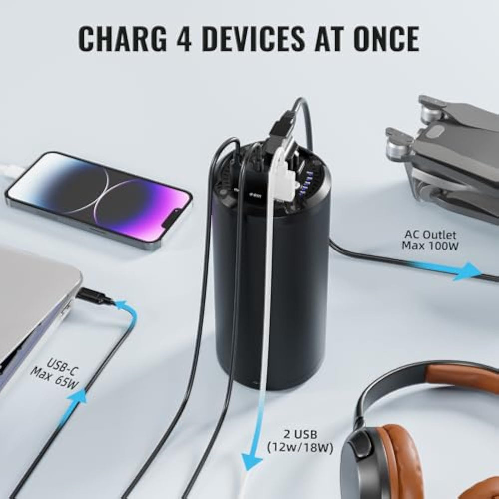 | Powerful Ac Output: With A High-Capacity Of 27000Mah, Our Portable Laptop Power Bank Delivers 100W (Max) Ac Output, Providing A Reliable Power Supply For Your Laptops, Cameras, And Other Devices. Stay Connected Wherever You Go! Compatible With Various Devices, Ideal For Travel Or Emergencies. | | Versatile Charging Options: Our Portable Charger Features Multiple Charging Options Including A Pd 65W Type-C Input/Output, A Usb-A 12W Output, And A Qc 18W Usb-B Output. Charge Your Devices Efficiently And Conveniently At Any Time. Supports Fast Charging For Different Devices Simultaneously. | | Extended Battery Backup: Never Run Out Of Power Again With Our Portable Power Bank. Equipped With A Battery Pack Function, It Serves As An External Battery With Long-Lasting Power Supply, Keeping Your Devices Charged Even In Critical Situations. Perfect For Outdoor Activities, Power Outages, Or Extended Travel. | | Compact And Travel-Friendly: Designed For Easy Portability, Our Ac Power Bank Is Compact And Lightweight. Slip It Into Your Bag Or Backpack Effortlessly, And Enjoy The Convenience Of A Reliable Power Source On The Go. Ideal For Travelers, Digital Nomads, Or Anyone Constantly On The Move. | | What You Get : Laptop Power Bank X 1; Type-C To Type-C Pd Data Cable X 1; User Manual X 1. If You Have Any Question, Please Feel Free
