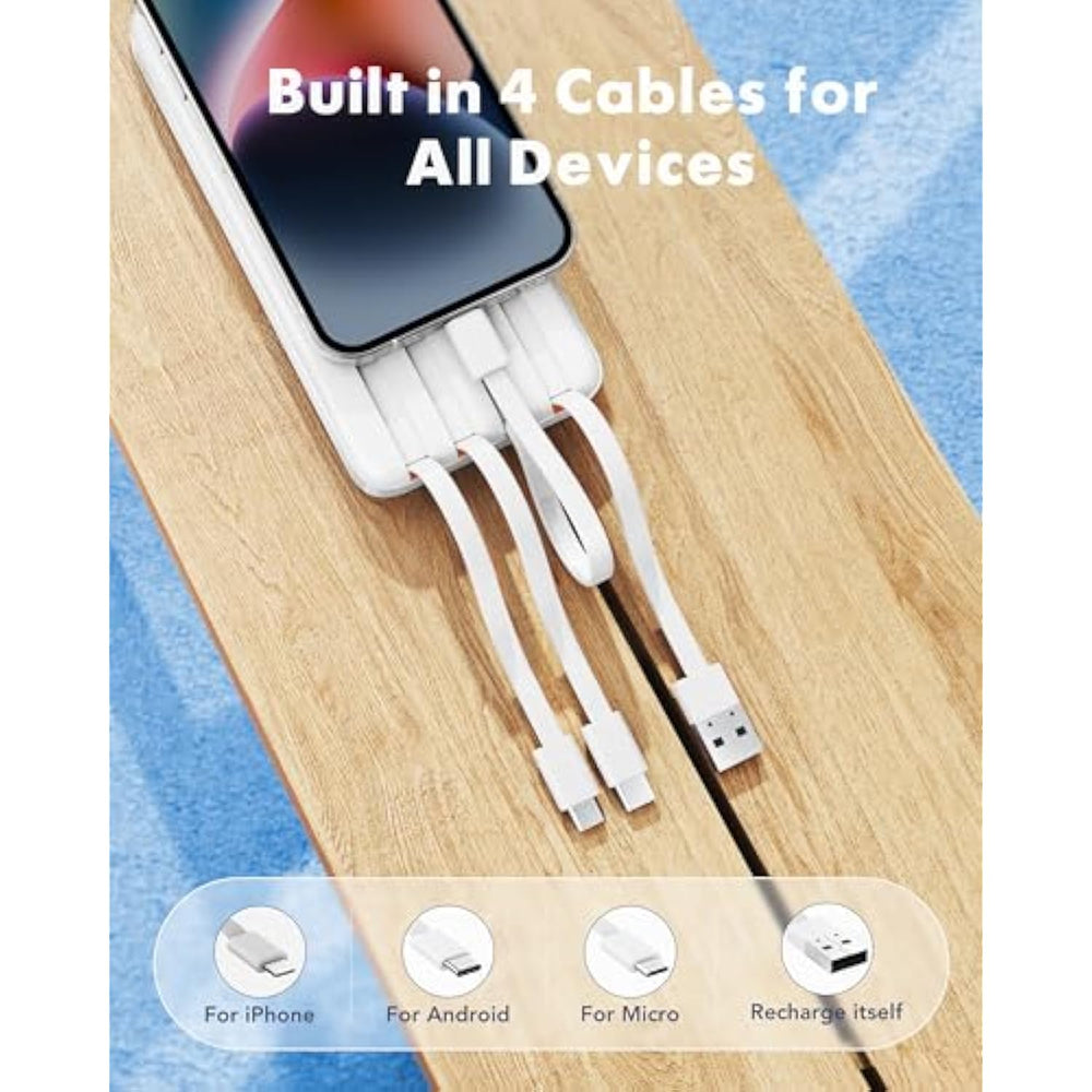 ???Universal Compatibility Sufficient Capacity? Power Bank Is Widely Compatible With All Brands Phones, Tablets. 20000Mah Capacity Is Enough To Power Devices For Several Days. It Charges Iphone 14 About 3.8 Times, Samsung Galaxy S23 Ultra 2.5 Times, Google Pixel 7 About 2.7 Times. Its High Capacity And Efficient Charging Technology Provide A Reliable And Fast Charging Experience. Say Goodbye To The Inconvenience Of Running Out Of Battery And Embrace This Powerful 20000 Power Bank. | | ???Portable Charger With Built In Cables? Portable Charger With Its Built-In Multi-Interface Cables, It Effortlessly Eliminates The Hassle Of Bringing Along A Load Of Charging Cables And Adapters Wherever You Go. Whether You'Re Traveling, Working, Or Simply On The Move Or At Home, This Power Bank Ensures You'Re Always Prepared To Charge Your Devices. Say Goodbye To Tangled Cords And Bulky Chargers, And Enjoy The Convenience Of This All-In-One Power Bank. It'S Here To Save The Day. | | ???5 Outputs, .