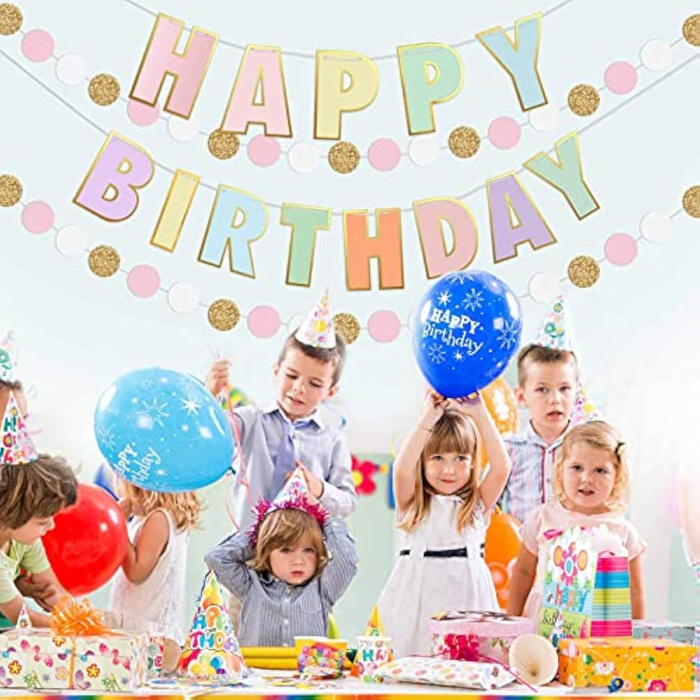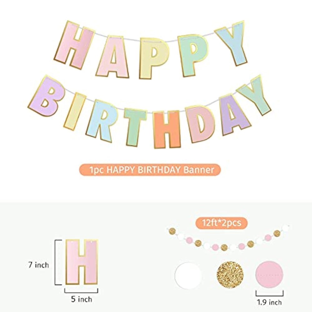 The pastel birthday banner and pennant flags come pre-strung for easy setup, saving time on party decorations. Perfect for both men’s and women’s celebrations, they can be hung from branches, ceilings, walls, dessert tables, or backdrops. The set includes a pre-strung Happy Birthday banner and two round dot garlands, all made from high-quality eco-friendly paper, creating a charming and festive atmosphere.