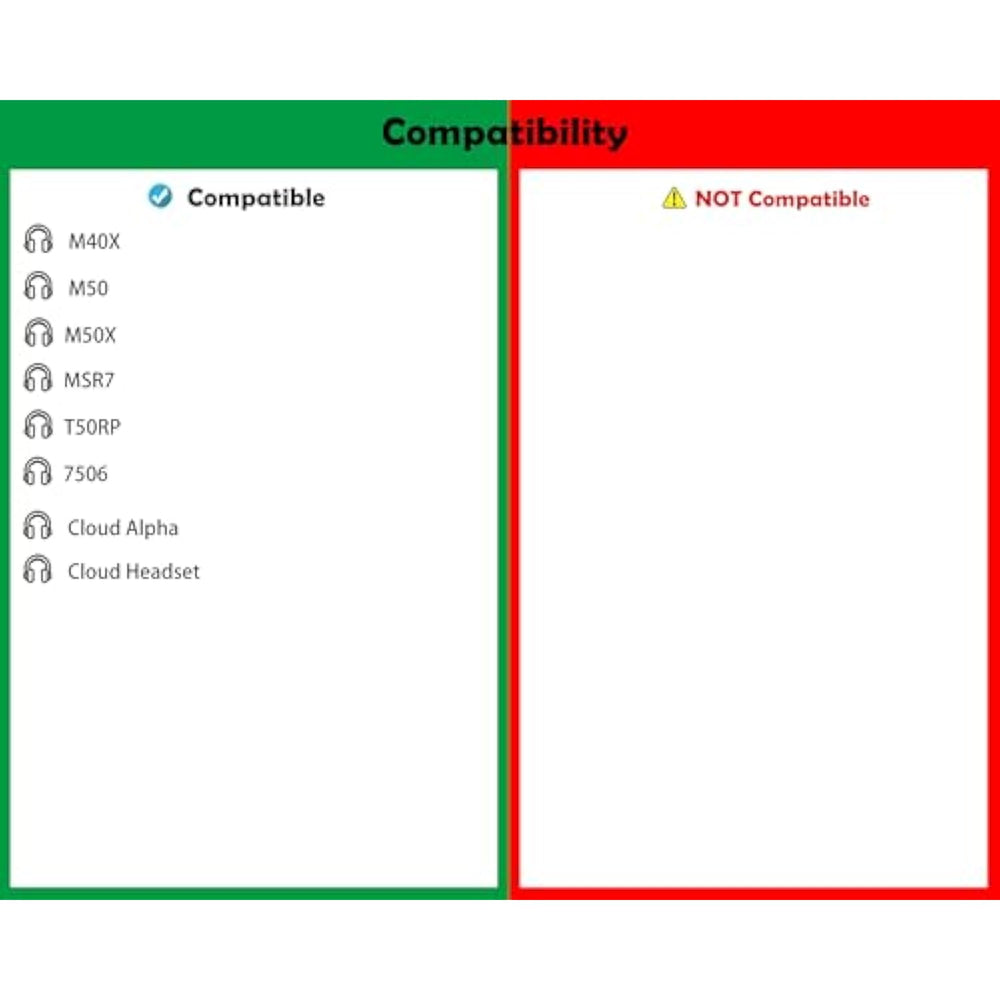 | Perfectly Compatible With : Audio-Technica M40X M50 M50X Msr7/Fostex T50Rp/Mdr 7506/Hyperx Cloud Alpha Hyperx Cloud Headset | | Breathable Earpads : Breathable Fabric With High Quality Memory Foam Keep Your Ear Dry And Bring You A Fantastic Experience | | Easy Installation : Designed Manufactured According To Original Headphone/Headset, No Glue Or Special Tools Needed. Fit For Your Headphone Flawlessly. | | Professional High Quality?Different With Normal Cheaper Earpads, These Earpads Manufactured In Professional Earpads Factory Under Strict Qc. Worth Replacing Your Old Earpads. | |