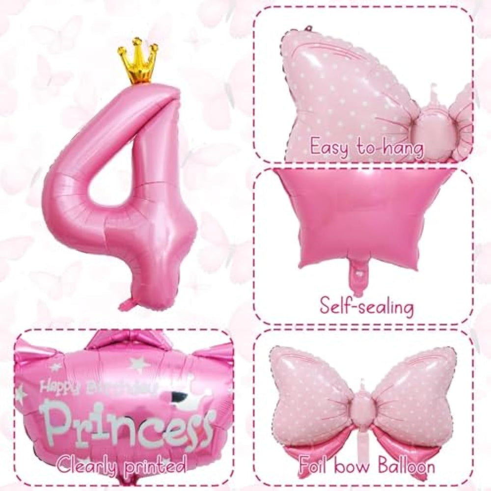 | Princess Themed Party Decorations: Package Includes: 1Pcs 40-Inch Pink Aluminum Foil Number Balloon With Crown(Choose From Numbers 1-9), 1Pcs 85Cm/33In * 94Cm/37In Pink Princess Crown Balloon, 1Pcs 88Cm/35In * 62Cm/25In Pink Bow Balloon, 2Pcs 18-Inch Pearl Pink Foil Star Balloons And 1Pcs Ribbon. | | High-Quality: Crafted From Durable Mylar Foil, These Balloons Are Non-Toxic And Harmless. They Are Designed To Be Filled With Either Air Or Helium, Ensuring Long-Lasting Enjoyment. This Comprehensive Princess Birthday Decorations Set Can Fulfill All Your Party Needs In One Go. | | Unique Design: Crafted From Premium Materials, The Special Princess Foil Balloons Boast A Distinctive Appearance. They Are Easy To Assemble, Adding Convenience To Your Party Preparations. The Pink Number Balloons Allow You To Commemorate Your Child'S Birthdays Each Year, Creating Unforgettable Memories. | | Versatile Use: Perfect For Girls' Birthday Celebrations, Princess Birthday Parties, Baby Showers, Gender Reveals, Baby Party Favors, Children'S Rooms, And Home Office Decor. | |