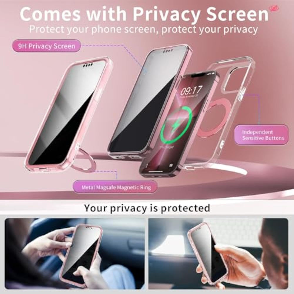 | ?Built-In Privacy Screen Protector?: The Colorful Frame Design Of The Iphone 14 Pro Max Front Cover Shows A Unique Sense Of Fashion, And The Delicate Tpu Material Frame Improves The Anti-Slip Performance. The Built-In Anti-Peeping Privacy Protection Film Protects Your Mobile Phone Information From Being Peeked By Outsiders To The Greatest Extent. Taking Into Account Both Aesthetics And Practicality, It Protects The Wonderful Moments Between You And Your Phone. | | ?Unique Upgraded 360° Rotating Stand??The Phone Case For Iphone 14 Pro Max Upgrades The Popular Ordinary Bracket To A 360° Rotating Stand, The Stand Is Made From Durable Aircraft-Grade Aluminum Alloy And Is Secured With Three Metal Rivets To Ensure It'S Strong And Durable. The 360° Rotating Design Allows For Flexible Use - Support At All Angles And Easily Fold Back To Invisible State.There Is No Case On The Market That Combines Anti-Peeping Function And Rotating Stand. | | ?Magical Super Strong Magnetism??This Upgraded Version Of The N52 Strong Magnet Is Specially Designed For Iphone 14 Pro Max. The Magnetic Suction Force Is Increased To 20N And Has A Suction Force Of 2400 Grams. Ensures A Secure Connection With All Magsafe Compatible Accessories. Even At Low Temperatures, It Provides Safe And Stable Protection For Mobile Phone Batteries, Enables Fast And Safe Charging, And Extends Battery Life. | | ?Top Military Grade Protection?: This Iphone Case Specially Made For Iphone 14 Pro Max Is Made Of Materials That Meet Mil-Std-810G Military Standards And Has Passed More Than 7,000+ Drop Tests. The Carefully Designed Internal Buffer Structure Can Effectively Disperse The Impact When The Phone Is Accidentally Dropped. The Aircraft-Grade Aluminum Material Provides A 3.0Mm Raised Edge To Effectively Protect The Lens, Just Like Putting On An Extremely Strong "Armor" For Your Phone. | | ?Problem Solving Perfect