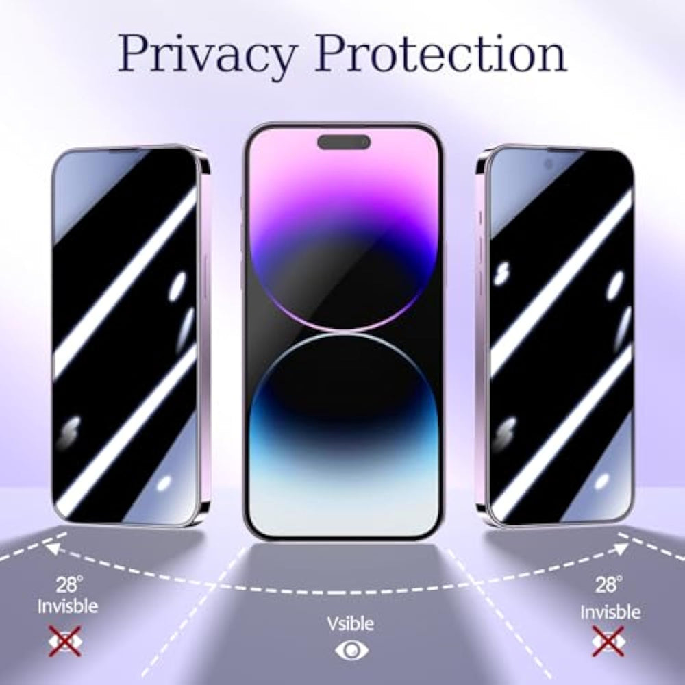 | ?Perfect Match?: This Time We Introduce A New Combination : 1Pcs Privacy Screen Protector Iphone 14 Pro Max (6.7") And 1Pcs Tempered Glass Film And With 1Pcs Camera Lens Protector,3Pcs In Total. The Most Cost-Effective, So You Can Spend Less Money To Get High-End Products. | | ?Privacy Protection ?: Privacy Screen Protector? Exclusively For Iphone 14 Pro Max 6.7 Inch.The Screen Is Only Visible To People Directly In Front Of The Screen.Keeps Your Personal, Private And Sensitive Information Hidden From Strangers. | | ?Superior Quality?: Premium 0.33Mm Thick Tempered Glass Provides Full Coverage, Scratch Resistance And Drop Protection For Your Iphone 14 Pro Max 6.7 Inch. | | ?Anti Fingerprint?: Oleophobic Coating Keeps The Screen Away From Fingerprints And Oil. Highly Sensitive To Every Touch And Touch. | | ?Easy Installation?: With The Included Tools, Installing The Protector Is Very Simple. Bubble-Free And With A Clear Screen. | |