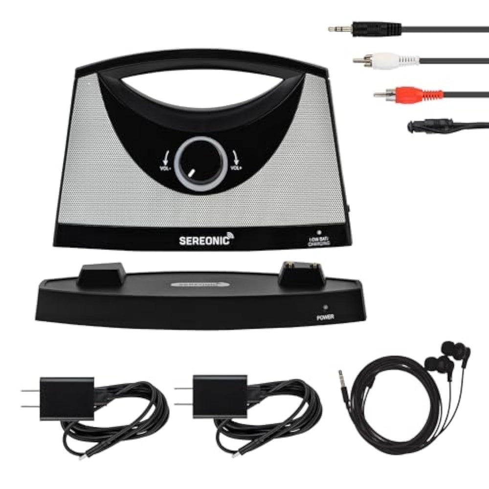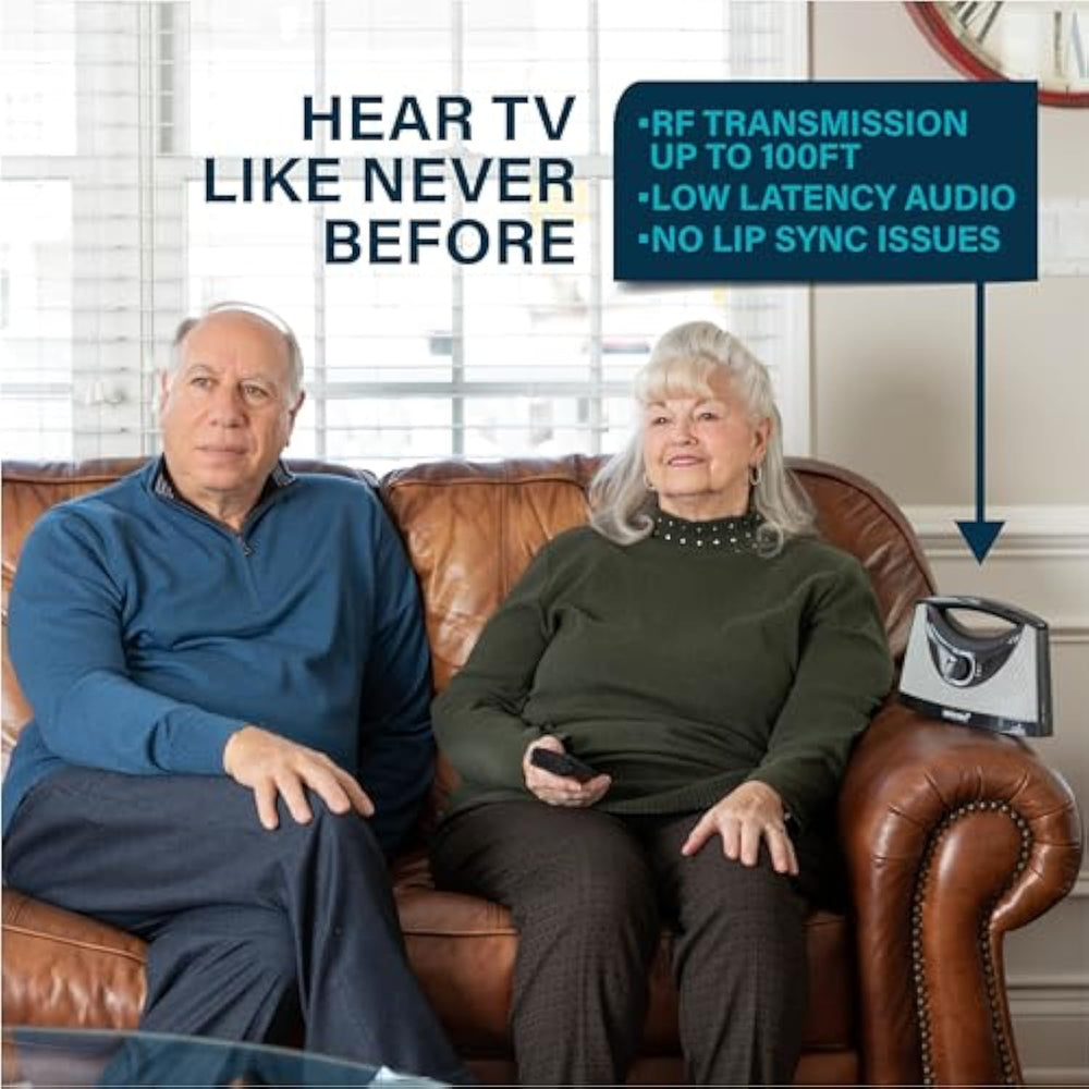 Bring The Sound Close: Hear Your Favorite Shows, Films, And Songs Without Turning Up The Tv. Place The Wireless Tv Speaker Next To You For Clear Audio Anywhere In Your Home. | | Versatile Receiver: Connect To Any Device With Rca, 3.5Mm (Aux), Or Digital Optical Jacks. Compatible With All Digital Audio Formats. | | Near Zero Latency: Transmits Custom-Tuned, Zero-Lag Rf Audio From The Base To The Tv Speakers, Unlike Bluetooth Speakers. | | Portable And Powerful: Use In Your Den, Bedroom, Kitchen, Or Outdoors. Enjoy Private Tv Listening With Included Earbuds. | | Convenient Power: Charge In About 3 Hours On A Usb-Powered Base Or Connect Directly To A Standard Charger With The Included Adapter. |