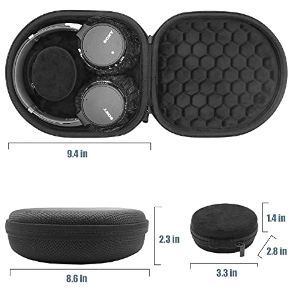 | EVA Hard Travel Carrying Case designed for Sony WH-1000XM5 / Sony WH-1000XM4 / Sony WH-XB910N / Sony WH-CH710N /Sony WH-CH720N Sony WH-XB900N / Sony WH-1000XM3, Bose 700 / QuietComfort 35 II / WH-CH520 / WH-CH510 / WH-CH500 / WH-1000XM2, AirPods Max (without the attached Smart Case) Wireless Noise-Canceling Over-Ear Headphones and its accessories (Case only, the headphones and accessories are not included) | | Water-resistant hard EVA exterior and soft lining interior with anti-shock bubble padding, offer double protection against knocks, impacts, bumps, drops, spills and scratches | | Extra separate storage case for storing and organizing USB cable and Audio Connection Cable that come with the headphones; Two dustproof covers protect the headphones against infiltrating dust, lint and dirt | | Smooth but sturdy 360 degree zipper are easy for opening and closing; Comes with a comfortable strong handle, making it easy to carry around | | Dimensions: 9.4 x 8.6 x 2.3 inches; Lightweight and compact, easily fits in your bag, backpack or luggage and convenient to take anywhere | |