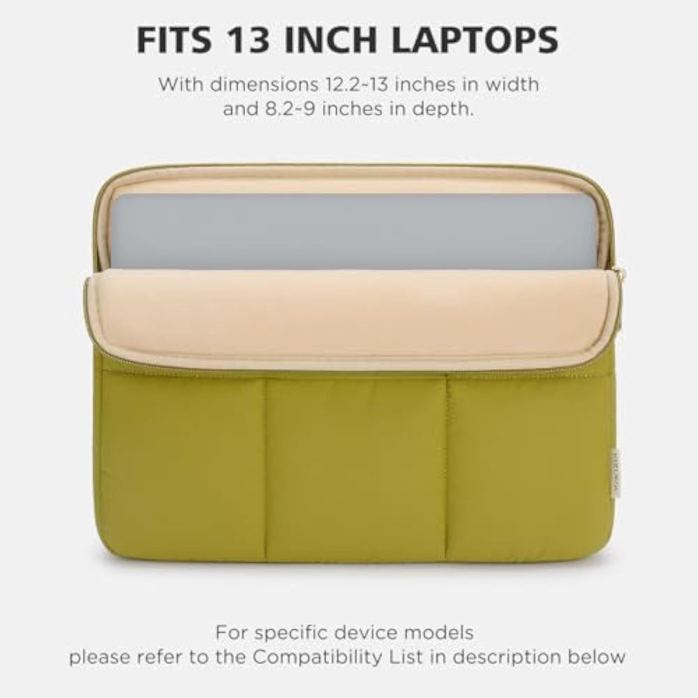 | ?Size? - Internal Dimension: 12.6" X 9.1" X 0.6" / 32 X 23 X 1.5 Cm, External Dimension: 13.2" X 10.0" X 0.8" / 33.5 X 25.5 X 2 Cm. Proper Fitment Varies According To The Size Of Devices. Please Check The Dimensions Of Your Device Before Purchg. | | ?Cute Puffy Design?- Get Bored Of Regular Black Or Grey Ones Already Our Puffer Series Of Laptop Sleeves Will Give Your Outfits A Refreshing Touch | | ?Fits In Your Bag?: This Padded Laptop Carrying Case Compresses To Fit Into Your Bag Or Laptop Backpack. Perfect For Anyone Looking For A Cute Macbook Pro Case, Macbook Air Sleeve, Hp Laptop Sleeve, Or Any Dell Laptop Accessories For Work Or School | | ?Protection?: A Thick Inner Strip On The Right Side Of The Laptop Bag, Which Can Protects Your Laptop From Scratches From Zippers And Provides Partial Impact Protection, So Your Laptop Is Completely Protected. | | ?Compatible Models? - Macbook Air 13 M3 2024/Macbook Pro 14 M3 M2/Ipad Air Pro 13 M4/13.3" Yoga Slim 7I Carbon/ Ideapad Flex 5 Gen 8 14" / 14" Lenovo Yoga 7I/14" Lenovo Thinkpad X1 Carbon 2022 /13.3" Hp Envy X360 13 /14.2" Matebook X Pro/13.3" Lg Gram 13/14" Huawei Matebook 14 | |