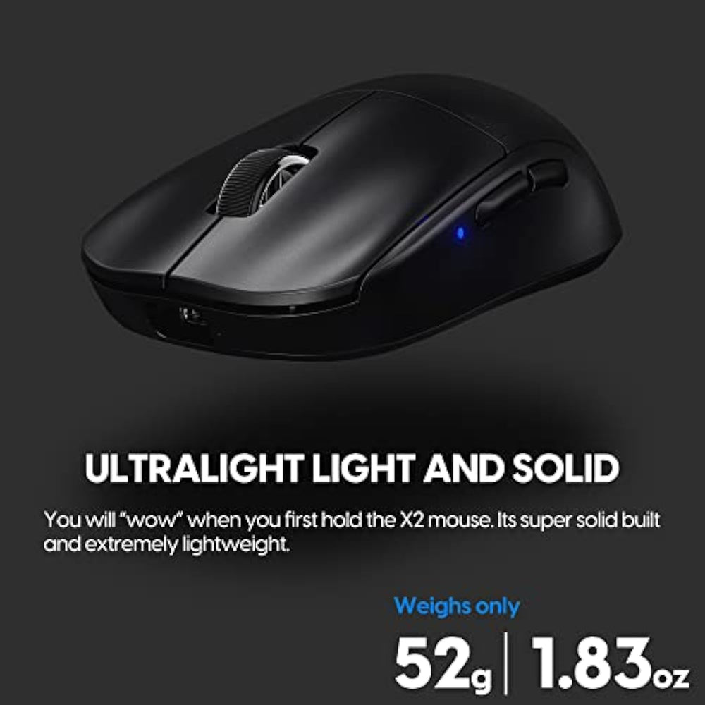 | Ultra Light Weight 52G - “Simple But Not Simpler.” We Kept This In Mind All The Time When We Designed X2 Structure. We Designed A Structure As Simple As Possible But Maintained Its Durability. In The Result, You Are Getting High Performance Gaming Mouse That Is Lighter Than The Egg In Your Hand. | | Symmetrical - The Shape Of The Mouse Will Be Extremely Comfortable In Your Hand. Durability And Performance With A Comfort Symmetrical Design. | | The Flagship 26K Sensor - Equipped With The Pixart’S Paw3395 Sensor Capable Of 650 Ips Speed, 50G Acceleration, 26,000 Programmable Dpi And 1000Hz / 1Ms Polling Rate. This Is The Highest Performance Optical Mouse Sensor. Motion Sync Technology Enhances Accurate Tracking. | | Highly Customizable - Precisely Adjust Dpi With A Botton, Reassign Your Keys, Create Your Own Macros, Adjust The Debounce Time As Low As 0Ms | | Well Definded Switches - Your Clicks Are Equipped With Ultra-Crisp And Durable Kailh Gm 8.0 Switches Ensuring 80Million Clicks. Ttc Gold Encoder Will Provide You With Balanced And Well-Defined Scroll Wheel Steps. | |