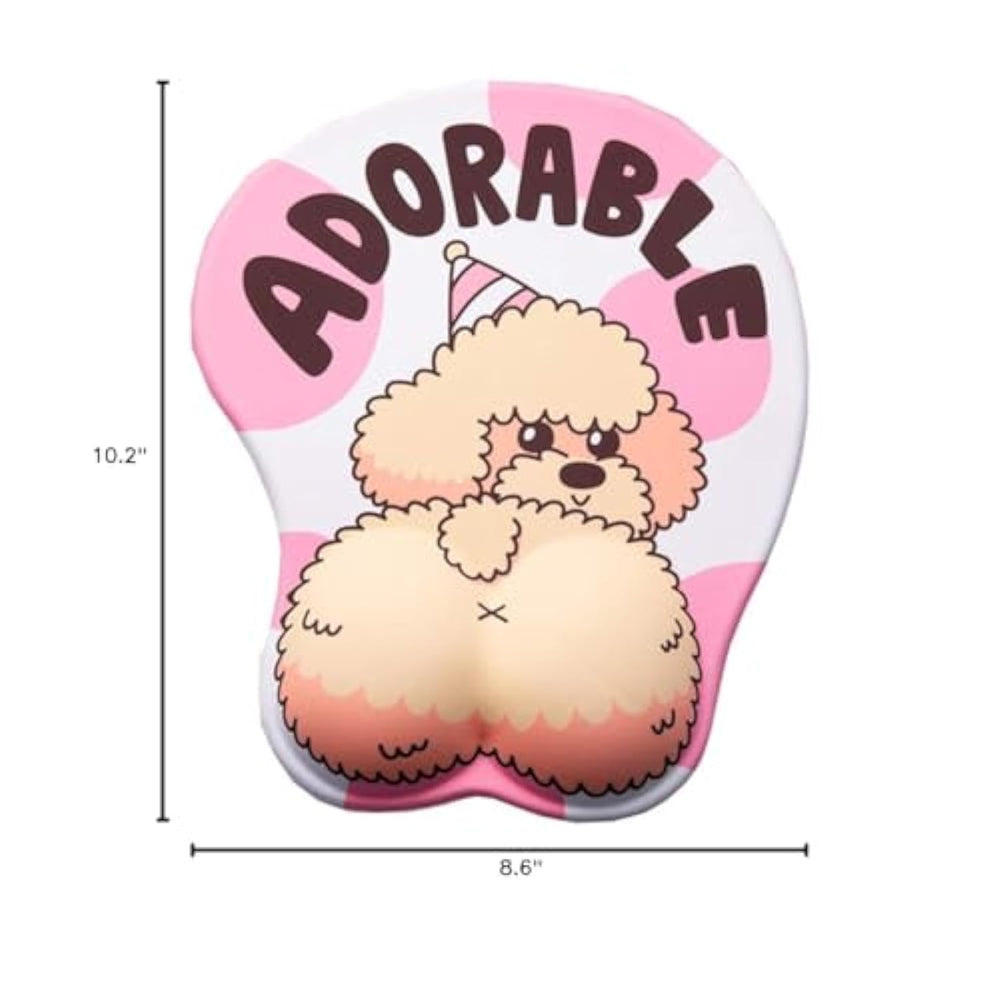 | Creative Design: Precisely Imitate The Cutest Dog Butt, At The Same Time, Redistributes Pressure Points For Soothing Support And Retains Body Heat For Improved Circulation. | | The Soft Cushion Conforms To Your Wrist For Maximum Comfort And Support. It Reduces Wrist Irritation And Wrist Pain. Keeps Your Waist In A Neutral Position For Ergonomic Comfort. | | Provides Excellent Tracking Surface For Your Mouse Non-Slip Design. | | Mouse Pad Size: About 8.6X10.2 Inch | | Made Of Silicone And Polyurethane Fiber, More Durable, Thick, Soft And Comfortable. | |