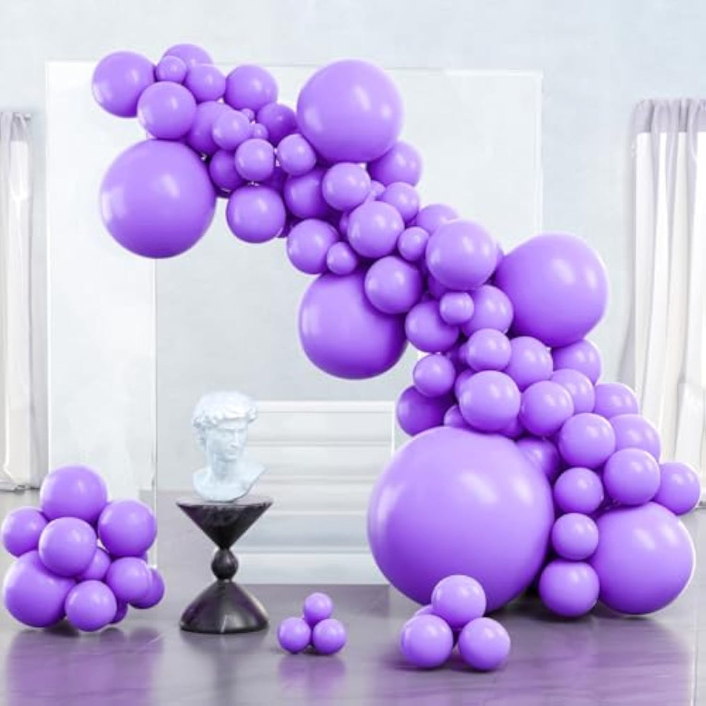 This 100 PCS Purple Balloon Set comes in assorted sizes to create stunning garlands and arches, including 1 pc 36-inch, 3 pcs 18-inch, 20 pcs 12-inch, 20 pcs 10-inch, and 56 pcs 5-inch balloons. Made from high-quality latex, these balloons are non-toxic, safe, and durable, perfect for both indoor and outdoor use. Fill them with air to last up to 72 hours or with helium for 3–6 hours of floating fun (best inflated 1–2 hours before your event for optimal results). Ideal for birthday parties, weddings, baby showers, anniversaries, and themed events, this purple balloon kit adds elegance and vibrance to any celebration.