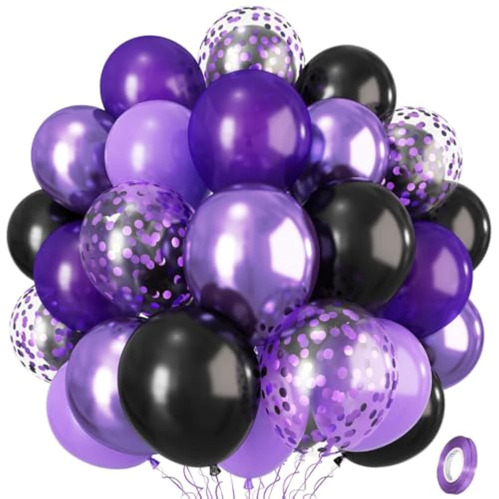 | ?? Purple Black Balloons - You Will Get 35 Pieces 12 Inch Latex Party Balloons Set, Includes Metallic Purple 5Pcs, Dark Purple 5Pcs, Matte Purple 7Pcs, Matte Black 13Pcs, Purple Confetti 5Pcs, Come With 1Pc Purple Balloon Ribbon. Perfect For Girls Women Birthday Baby Bridal Shower Wedding Party Decorations Supplies. | | ?? Premium Durable Material - The Black Purple Confetti Balloon Kit Is Made Of High Quality 100% Natural Latex, Thick Thick And Long-Lasting, Not Easy To Burst, Every Balloon Has Been Rigorously Tested And Selected Manually, Safe For Children. They Can Be Filled With Air Or Helium, Suggested Use With A Balloon Pump. | | ?? Easy To Use - The Dark Purple Black Balloons Support Both Air And Helium. You Can Blow Them Up With A Mouth, Pump Or Helium. After Inflating, Shake The Confetti Balloon And Gently Rub It With Your Hair Or Dry Fabric To Make The Confetti Stick To The Side Of The Balloon, Which Can Make The Balloon Look More Beautiful. When The Party Is Over, You Can Pop The Balloons To Let The Confetti Fall, Adding Fun To The Party. | | ?? Enjoy Party Time - Our Purple Black Confetti Latex Balloons Are Suitable For Many Indoor Events And Outdoor Occasions And Can Add Atmosphere To Your Party. It Is The Perfect Decoration For Happy Occasions Or Celebratory Moments Such As Girls Women Birthday, Baby Shower, Christening Party, Wedding, Bridal Shower, And Other Party Decoration Supplies. Makes Your Party Attractive And Romantic. | | ?? Warm Tips - After The Balloons Are Inflated, The Color Effect Will Become Lighter And Better Show The Color Close To The Picture. In Addition, The Color Of The Balloon May Vary Under Different Lights. If You Have Any Questions Or Suggestions, Please Let Us Konw, We Are Happy To Help You And Reply To You Within 24 Hours. | |