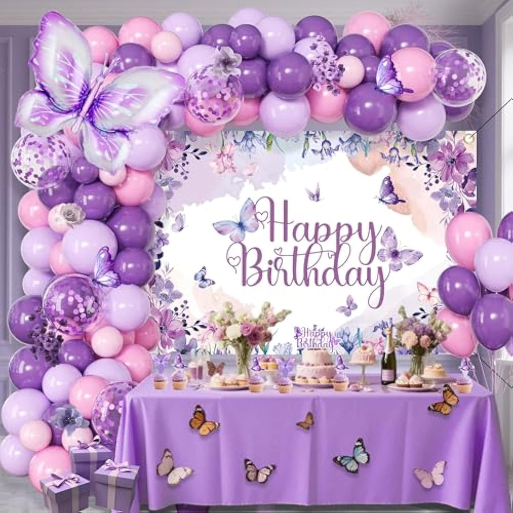 | Complete Kit: Includes 70 Balloons, 1 Butterfly Foil Balloon, 1 Backdrop (59X39 Inches), And Installation Accessories For A Stunning Party Setup | | Balloon Variety: Features 5 Confetti Balloons, 55 Latex Balloons In Purple And Pink Shades (10-Inch Size), And 10 Small Accent Balloons (5-Inch) | | Elegant Backdrop: Beautiful Floral Birthday Backdrop With Butterfly Design, Perfect For Photo Opportunities And Party Focal Point | | Easy Assembly: Comes With Balloon Tape Strip, Balloon Dots, And Inflating Straw For Convenient Diy Balloon Arch Creation | | Perfect Theme: Ideal For Butterfly-Themed Celebrations With Coordinated Purple And Pink Color Scheme For A Magical Atmosphere | |
