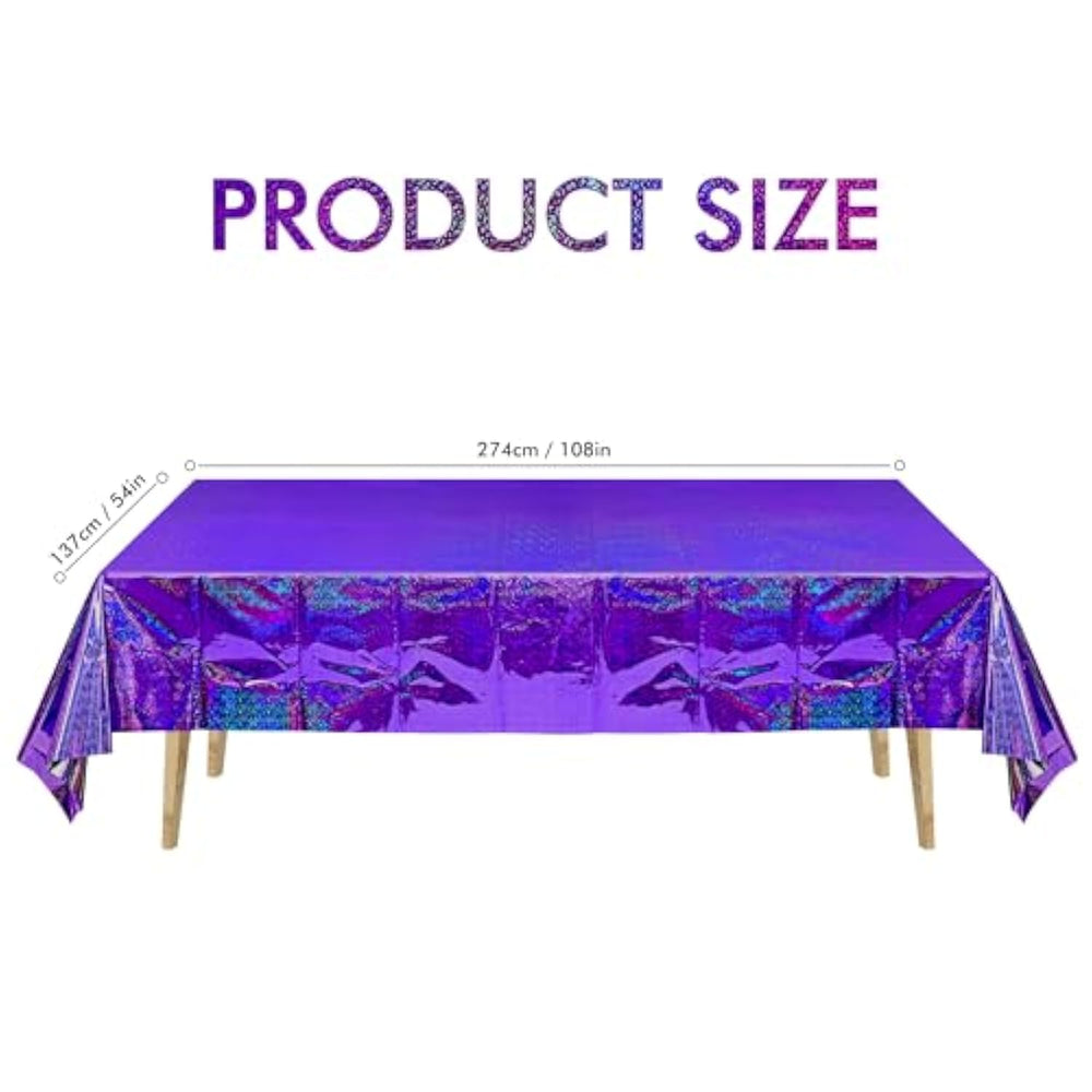 | This Plastic Table Cloth Disposable Set Is 108"L X 54"W, Can Fit Up To 6 Foot Rectangle Tables. | | The Glitter Purple Table Cover Fits For Many Theme Party Decorations, Such As Bachelorette Party, Bridal Shower Party, Valentine'S Day Party, Engagement Party, Halloweens Party, New Years Eve Party, Homecoming Party, Butterfly Birthday Decorations, Ceremony And Festivals Celebration. | | The Disposable Tablecloth Is Also For Many Outdoor Activities, Such As Picnic, Camping, Patio Bbq Theme Decorations. | | Disposable And Waterproof Feather: Just Enjoy Your Party With Your Friends And Families. The Rectangle Table Cloths Are Waterproof, They Are Easy To Clean Oil Or Water Stain. With The Disposable Feature, You Can Throw It Directly After Your Party. | | Warm Tip: The Table Cover Is Made Of Pe Plastic, May Have A Little Smell. Please Put It At The Air Before Your Party. And The Plastic Table Cover Is Light And Thin In Texture, Please Cover Your Rectangle Table Carefully And Gently. | |