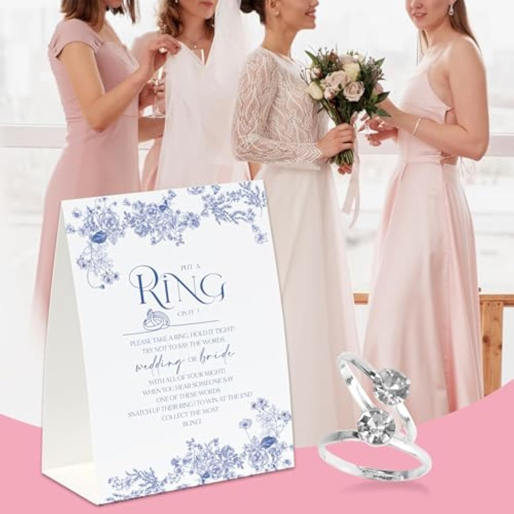 | ?Package]?You Will Receive One 5"X7" Sign And 50 Metal Rings. Enough For 50 Guests To Join The Game. | | ? Quality ?Our Game Sign Made Of Thick Coated Paper With Clear Printing. And Rings Are Made Of Metal Material With Smooth Touching Which Can Not Only Be Used At The Game But Also Given To Guest As A Little Gift After The Bridal Shower | | ? Easy To Play ? Take A Ring And Hold It Tight! Try Not To Say The Word “Wedding” Or “Bride”. When You Hear Someone Say One Of These Words Snatch Up Their Ring! The One With The Most Rings At The End Wins! | | ?Occasion ? This Game Is The Perfect Addition To Any Bridal Shower, Everyone Can Enjoy And Have Fun Together! | | Display This Put A Ring On It Sign, Start The Game And Have Fun With Your Friends At Your Bridal Shower! | |