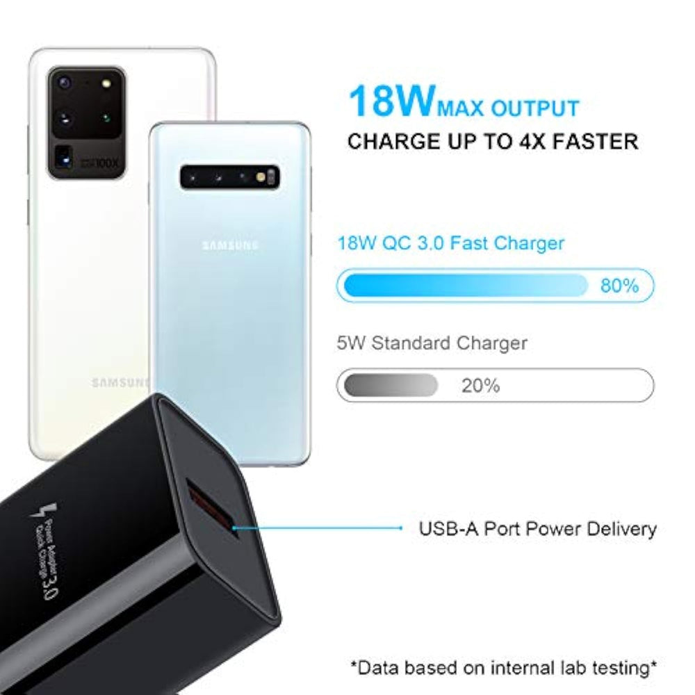 | ?Quick Charge 3.0 Wall Charger?: 18W Adaptive Fast Charging Wall Charger Charges Up To 50 Percent Battery Level In 30 Minutes With 4 Times Faster Than Traditional Charger. | | ?Fast Charger?: Fast Charger Adapter Provides The Fastest Charging Speed To 3.0 Devices With 75 Percent Faster Than Standard Chargers. ( Note: Do Not Support Quick Charge On Google Pixel Series Devices; Fast Charge Only Compatible With 3.0 Enabled Devices.) | | ?Perfect Compatibility?: Adaptive Fast Charger Usb Fast Charging Block Compatible With Samsung Galaxy S25 S24 S23 S22 S21 S20 Fe S10E S9 S8 Note 20 Ultra/10/9/8, A16 A15 A14 5G A56 A55 A54 A36 A35 A34 A26 A25 A24 A23 A06 A05S A04S A03S A02S M13 A10E A9 A11 A12 A13 A32 A20 A21 A53 A52 A51 A50 A71 A72, Iphone 16/15/14/13 /12/11/Pro/Max/Se/Xs Max/Xr/X/8/7P/6S, Google Pixel 9/Pro/Xl 8A/8/8 Pro 7A/7/7 Pro 6A/6/6 Pro 5 4/4A/4Xl 3/3A/3Xl, Lg V60 V50 V30 V35 Thinq, Stylo 6/5/4, And More. | | ?Safety Assurance?:Ce And Fc Certified, 'S Usb Power Adapter Built With High-Grade Fireproof Pc Materials To Offer Multiple Protection Against Short Circuiting, Over-Heating, Over-Current, Over-Voltage And Over-Charging. And Intelligent Circuit System To Maximize Charging Efficiency. | | ?What You Get?: 18W Quick Charge 3.0 Wall Charger(Black) 12-Month (Free Replacement Or Refund) And Friendly