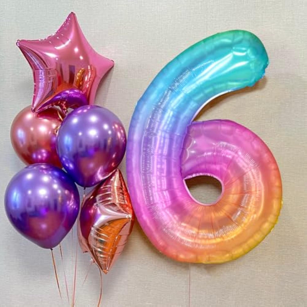 | ?Rainbow Number Balloons?You Will Receive 40 Inch Rainbow Foil Number 6 Balloon And 1Pc Straw, For Easily Inflate And Deflate.The Size Of The Digital Balloon Before Inflation Is About 31-33In, And The Size After Inflation Is About 40In.We Provide 40 Inch 0-9 Giant Number,You Can Select The Number Balloon You Want For Decoartion ! | | ?High-Quality Material?The Rainbow Number Balloons Are Made Of High-Quality Aluminum Film, And Not Easily Damaged, After Inflate That Can Hang It On The Wall For 8 Days Or Even Longer Without Air Leakage. You Can Use The Straw In The Balloon Set To Inflate And Deflate It Slowly. | | ?Easy To Use ?The Big Number Balloons Have Self-Sealing Valve,You Can Slowly To Inflate Using The Straw Or An Air Handheld Pump,Please Avoid Filling More Than 90% Of Air Or Helium,Prevent The Balloon From Bursting Due To Over-Inflation,After Filling The Balloon,And It Can Be Completely Glued By Pinching. | | ?Wide Application ?The 40 Inch Rainbow Number Foil Balloons Can Perfectly Decorate Any Birthday Celebration,Anniversary, Graduation, Party, Weddings, New Years,Halloween Or Christmas And Many Other Party Decoration, And Is Also A Great Photo Prop,That Will Surely Create A Remarkable Party Ever! | | ?Number Balloon Tips?Please Keep The Number Balloon Away From Any Heat Source Or Sharp Points To Avoid Melting And Breaking.If The Ambient Temperature Cause The Balloon To Deflate,You Can Use The Straw To Inflate Again. Cause The Rainbow Number Balloons Are In Gradient Rainbow Colors And Are Randomly Printed, The Color Distribution Of Each Balloon Is Uneven. | |