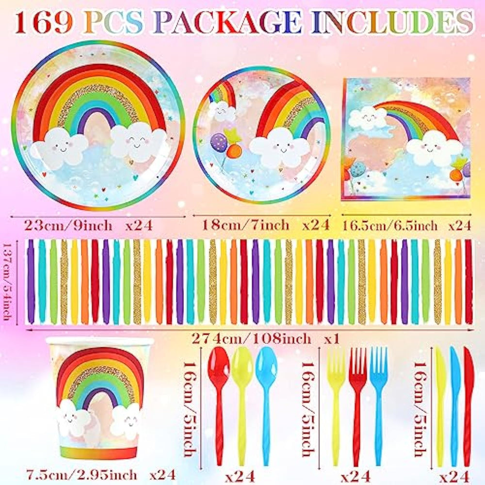 ?? Rainbow Birthday Decorations Dinnerware Set*- This Vibrant Party Supplies Package Includes; 24Pcs 9" Thick Paper Plates,24Pcs 7" Thick Paper Plates, 24Pcs Napkins, 24Pcs Cups, 24Pcs Napkins, 24Pcs Silverware Set (Forks, Knifes, Spoons) And Rainbow Tablecloth To Create A Vibrant And Colorful Rainbow Themed Celebration. | ?? Premium High Quality*- Our Rainbow Party Tableware Is Made From Durable And Reliable Paper Materials, Ensuring That Your Decorations Stay Intact Throughout The Party. Rainbow Paper Plates Are Sturdy And Durable Enough To Hold Food Well, The Rainbow Napkins Are Soft And Odorless. You Can Use All With Peace Of Mind. | ? Colorful Unique Table Setting*- The Rainbow Tablecloth, Plates, Cups, Napkins And Colorful Utensils Create A Visually Appealing And Cohesive Look For Your Party Table.Vibrant Decorations For Colorful Celebrations ! | ? Versatile Usage*- Perfect For Various Occasions Like Birthday Parties, Baby Shower, Gender Reveal, Graduations, Colorful Pool Parties, 2Nd, 1St Birthday Or Any Other Event Where You Want To Add A Burst Of Color. | ? Easy And Convenient*- Disposable Plates, Cups, Napkins, Silverwares And Colorful Tablecloth Save You From The Hassle Of Washing Up After The Party. Save Your Time With Easy Setup And No Cleaning After A Colorful Day. |