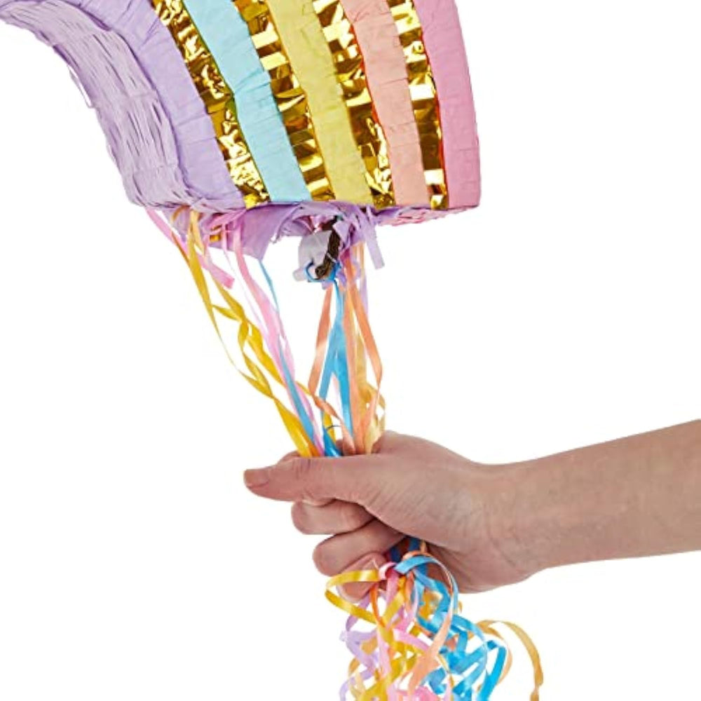 Pastel Rainbow Pinata: This Girls Pinata Features Bright Pastel Pink, Orange, Yellow, Blue, Purple And Gold Colors To Create A Festive Atmosphere At An Upcoming Celebration | Fun For Everyone: Guests Can Take Turns Pulling The Ribbons From The Pull String Pinata Until One Ribbon Finally Releases The Contents Inside, Creating A Fun Gender Reveal Game For All To Enjoy | Lightweight And Sturdy: The Birthday Pinata Is Made Of Corrugated Cardboard Covered With Tissue Paper; Perfect To Add To Your Pastel Rainbow Party Decorations For Birthday Party Or Gender Reveal Celebration | Easy To Fill: This Pull String Pinata Measures 16.5X10X3 Inches; Cut A Hole In The Label At The Top To Easily Fill With Assorted Candy, Confetti, And Small Favors (Fillers Not Included) | Get Your Party Poppin': In This Pack, You Will Receive 1 Pull String Rainbow-Shaped Pinata To Add To Your Gender Reveal Decorations Or Rainbow Birthday Party Supplies |
