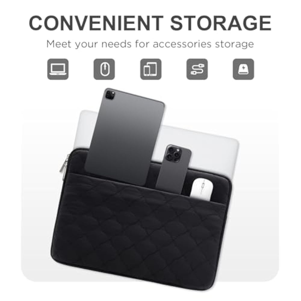 | ?Product Specifications?Interior Dimension: 15.55 X 11.22 X 0.79In(39.5 X 28.5 X 2Cm) (L X W X H). Please Check Your Device Dimensions Against The Laptop Sleeve'S Internal Dimensions To Ensure Perfect Fit. | | ?Compatibility?Compatible With 15.6 Inch Hp Pavilion Laptop/Hp Laptop 15/Hp Envy X360, 16.1 Inch Omen By Hp Laptop; Dell 15.6 Inch Latitude 3520 Laptop; Acer 15.6 Inch Aspire 3/5/7 Laptop, Acer 15.6 Inch Nitro 5 Gaming Laptop; 15.6 Inch Thinkpad E5/P15/P15V/T15P, 16 Inch Thinkpad P16/P16S/T16 And Most Other Laptops/Notebooks/Ultrabooks /Chromebooks With A 15.6 Inch Display. | | ?Extra Front Pocket?This Laptop Comes With An External Pocket On Its Sleeve, Which Has Enough Space To Store Your Mouse, Cable, Phone, Memory Card, External Hard Drive, Pen, And More. The Zipper Slides Smoothly, Making It Easy To Access The Laptop. | | ?Convenient Design? Double-Way Zipper Closure Allows You To Take Laptop Easily. Slim And Lightweight Makes It Easier To Slide Into Your Tote Bag, Briefcase, Backpack Or Other Bag. Zipper Glides Smoothly And Allows Convenient Access To Your Laptop Computer. | | ?Multi-Layer Protection?As An Inner Case, Outer Layer Is Covered With Polyester Fabric, Protecting Against Dust Dirt Debris Scratches. Soft Fluffy Lining Interior And High Resilience Epe Inner Layer Offers Protection Against Bumps Shakes And Extrusion. | |