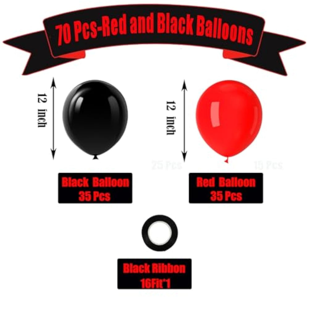 | ?Premium Value Pack?This Red And Black Balloon Kit Includes 35 Red Balloons?35 Black Balloons And 1 Roll Of Black Ribbons. The Size Of The Balloon Is About 12 Inches After Inflation. Red+Black, A Classic Color Scheme That Shakes People'S Hearts. | | ?High-Quality Material?Our Black And Red Party Balloons Are Made From Eco-Friendly And Biodegradable Natural Latex Rubber, These Balloons Are Thick(2.8 G/Pcs), Stretchy, And Durable With A Shiny Surface. You Can Use It Safely At Parties | | ?Wide Application?Our Red Black Latex Balloon Sets Perfect For Birthdays Graduation Wedding Anniversaries Lumberjack Party And Pirate Theme Party. 2-3 Packs Red Black Balloon Kit Good To Create A Bigger Romantic Gorgeous Party | | ?Tips For Use?Balloons Support Both Air And Helium. Fill The Balloon Slowly With 90% Gas To Fully Inflate The Balloon And Prevent The Balloon From Bursting Due To Over-Inflation. Exposing To The Sun For A Long Time Will Oxidize The Balloons; So Try To Keep Them In A Cool Place Before Use To Maintain Their Luster | | ?Trust Us?Providing Our