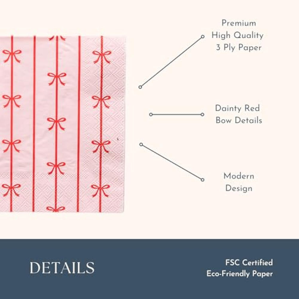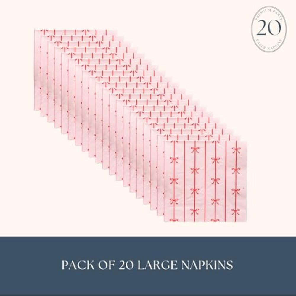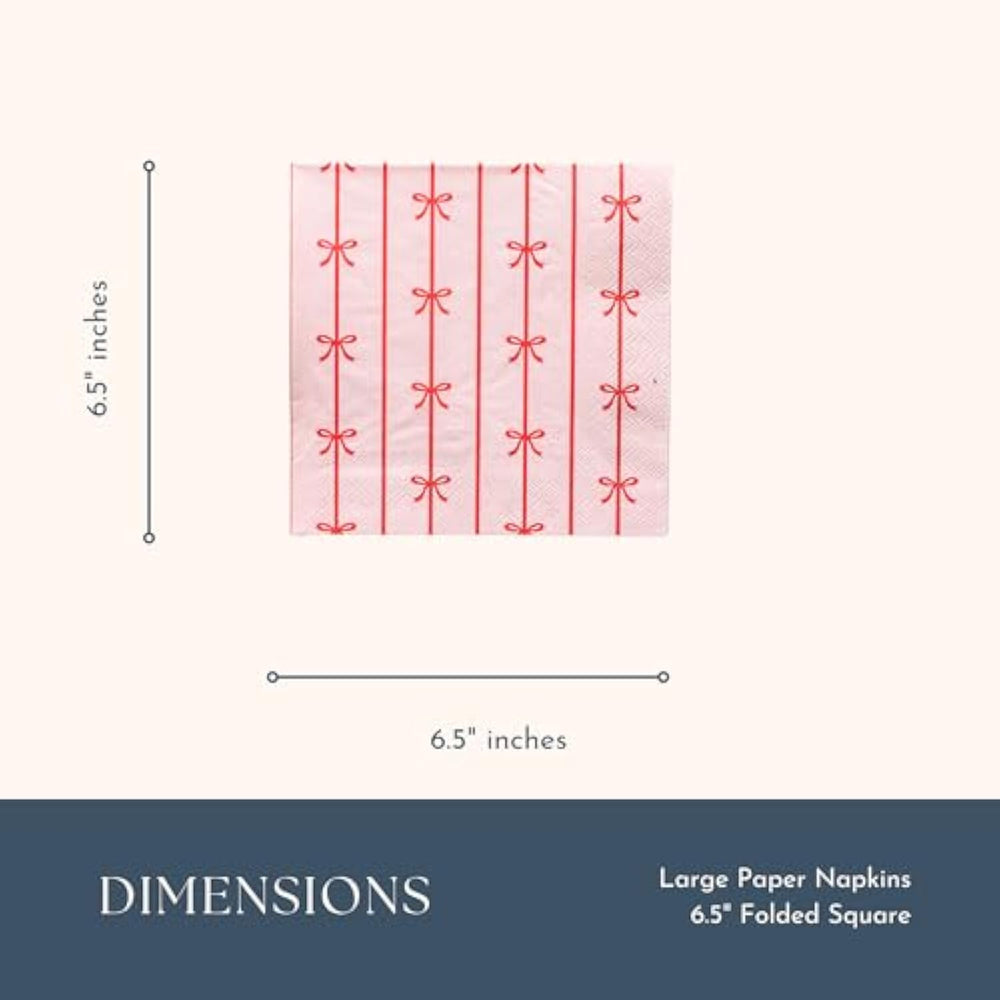 | Red And Pink Large Bow Napkins | | Quantity: Includes 20 Napkins | | Sizing: 6.5” X 6.5” Square (When Folded) - Perfect Large Size For Lunch Or Dinner | | Every Occasion: We Love For: Birthday Parties, Christmas, Valentine'S Day, Bachelorette, Pink Christmas, And Bridal Shower. | | High Quality: Uses Only The Best High-Quality Premium Materials. Napkins Are Fsc-Certified Using Eco-Friendly 3-Ply Thick Paper | |