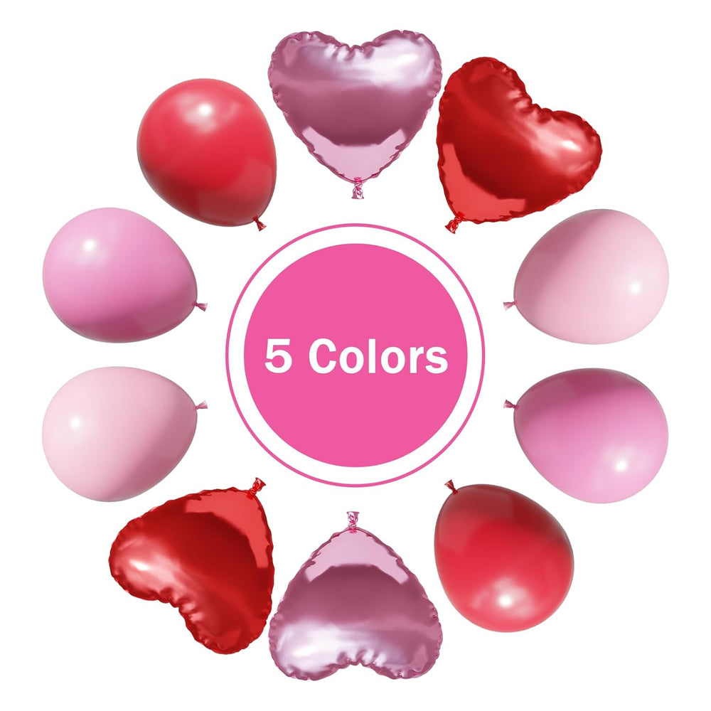 | Valentine'S Day Set: The Red Pink Balloons Garland Arch Kit Includes 129Pcs Different Sizes Of Red Balloons(18In*2, 12In*15, 10In*14, 5In*20), Pink(18In*2, 12In*13, 10In*8, 5In*15),Maco Pink(12In*8, 10In*9, 5In*15), Red Foil Heart*5,Pink Foil Heart*5, A Roll Of Garland Strip And Glue Dot, The Synergy Of Red Pink And Heart Balloons Can Make Our Valentine'S Day More Romantic. | | High-Quality Latex Balloons: These Valentine'S Day Party Balloons Are Made Of High Quality Latex, Thicker Than Ordinary Balloons, Ensuring Durability, Non-Toxicity, And Resistance To Bursting,Safe To Be Used And Played By Adult And Children. | | Perfect Party Decorations:This Valentine Balloons Arch Is Perfect For Valentine'S Day, Marriage Proposals, Weddings, Anniversaries And Romantic Parties, Also Can Be Used As Party Decorations For Women, Girls, Mother'S Day, Birthdays And So On, Adding A Memorable Atmosphere To Any Event. | | Easy To Assemble: Pink And Red Balloons Garland Arch Kit Can Be Easily Assembled, Stuff The Inflated Balloons Into The Holes Of The Balloon Arch Chain, You Can Enjoy Diy With Your Family, You Will Have A Beautiful Valentine'S Balloons Decorations, Then Creat Great Romantic Party Atmosphere, It Will Be A Love Craft. | | Warm Tips: These Valentine'S Party Balloons Are Easy To Inflate With Air Or Helium.The Color Of The Balloons May Vary Under Different Lights, Please Do Not Over Inflate The Balloon. After The Balloon Is Inflated, Avoid Sunburn, Overheating, Sharp Objects And Excessive Friction. After You Purchase This Product, If There Is Any Dissatisfaction, Please