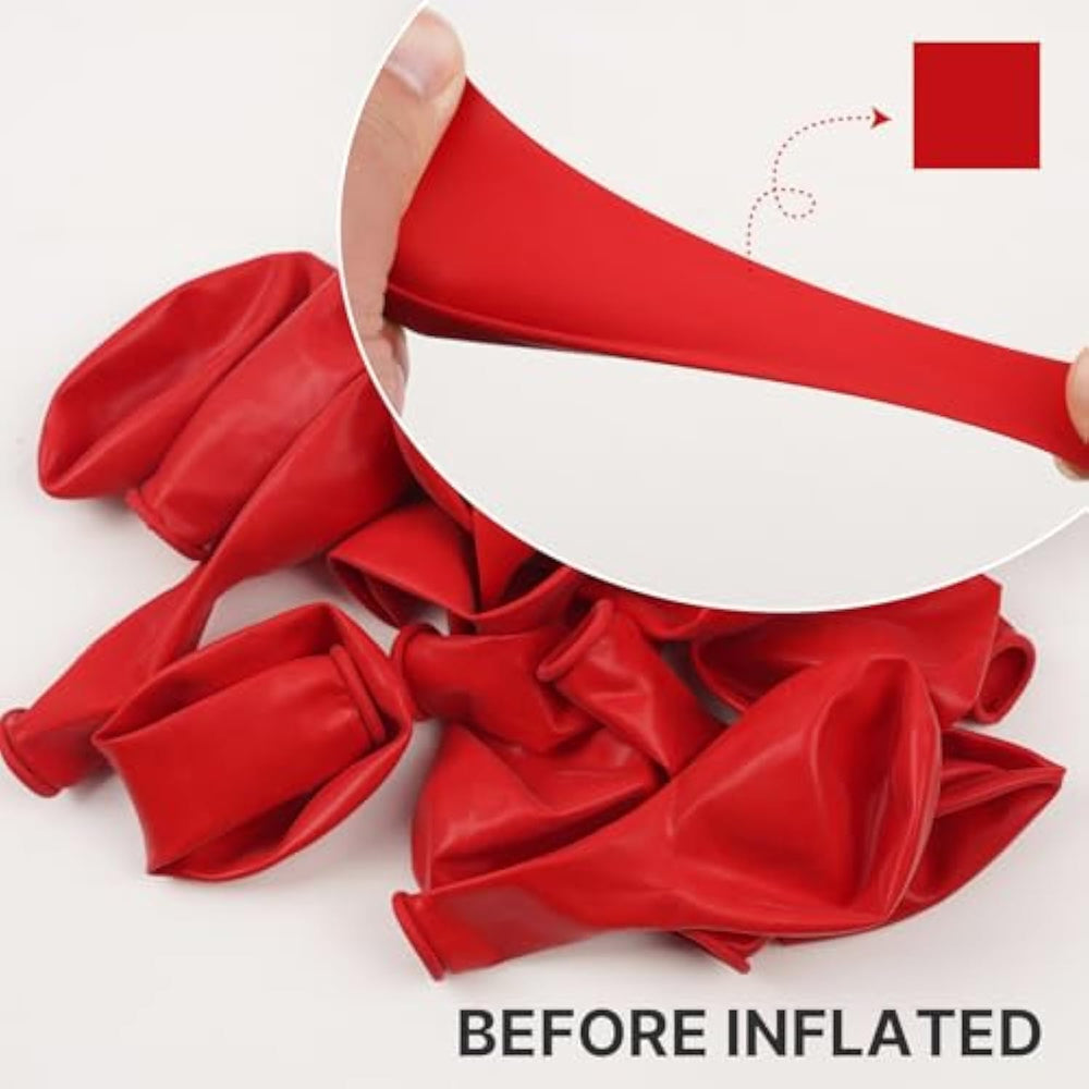 | Package Includes: 18 Inch Red Balloons (3Pcs), 12 Inch Red Balloons (25Pcs), 10 Inch Red Balloons (25Pcs), 5 Inch Red Balloons (32Pcs), In A Solid Consistent Color. Pay Attentions That The 5 Inch Balloons Could Not Float When Inflated With Helium. | | Thick Durable Latex: These Red Balloons Are Made With High Quality Thick Material, Each Balloon Stays Full Longer Perfect For Arches Garlands Centerpieces. Ensuring Your Graduation, Birthday Decorations Stays Perfect From Setup To Celebration End. | | What To Fill With: Red Latex Balloons Filled With Air Will Stay Full For Up To 72 Hours, And Have Standard Balloon Necks, Allowing Quick Inflation. These Red Balloons Can Bringing Joy To Your Birthday Party, Wedding, Baby Shower Decorations. | | Attention Warning: Please Do Not Overfill The Red Balloons And Also Avoid Sunburn, Overheat, Pointed Object And Excessive Friction. Control The Amount Of Air Inflated Into Each Balloon To Achieve Your Ideal Balloon Size, And Enjoy Your Birthday Party. | | Perfect For Multiple Occasions: Whether It'S A Graduation, Bachelorette Party, Wedding Party, Red Carpet Party, Birthday Party, Casino Party, Citizenship Party, Cherry Themed Party, These Red Balloons Are Ideal And Making Your Event More Memorable. | |