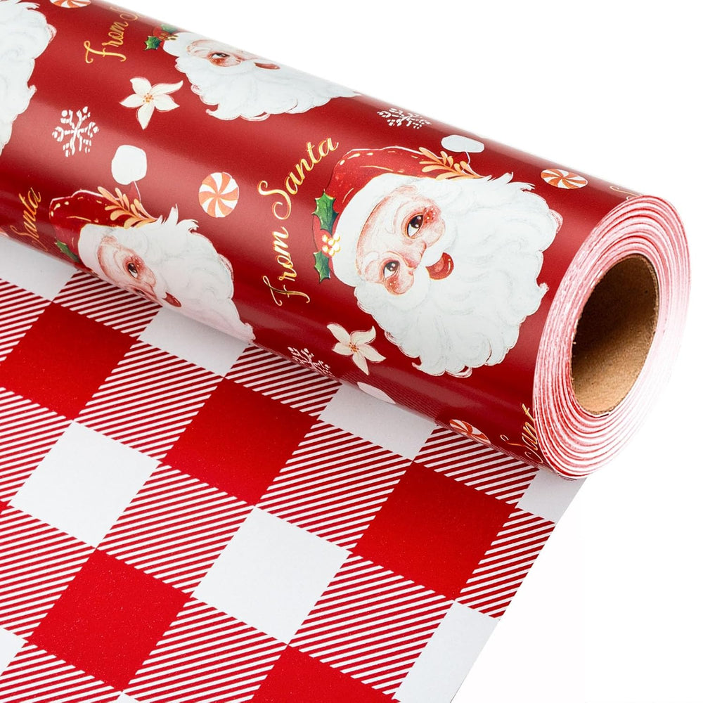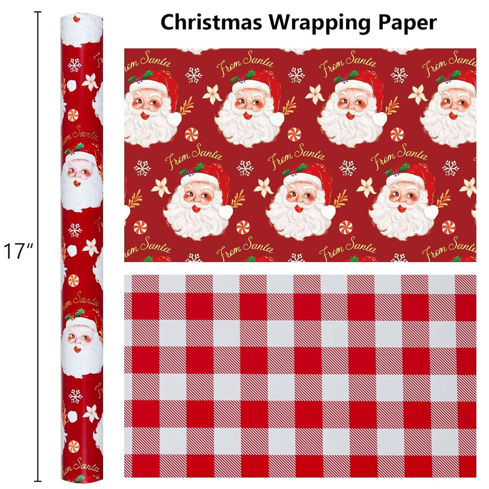 | Christmas Wrapping Paper: Reversible Red Santa Claus, Snowflake, Candy Design, Back With Red Lattice, Both Beautiful, But Also Easy To Cut, Reduce Waste Mini Roll: 1 Roll Of Wrapping Paper In Total. The Size Is 17 Inches Wide X 32.8 Feet Long. These Rolls Are Not Standard Width, They Are Shorter Than Usual, Perfect For Small And Medium Gifts. Premium Quality: Made Of High-Quality Paper Material, At 80Gsm, It Is Thick Enough Not To Tear, But Not So Thick That It Cannot Be Folded Into Strange Shapes! The Item Comes With Shrink Film To Prevent The Wrapping Paper From Scratching And Reduce Dust Premium