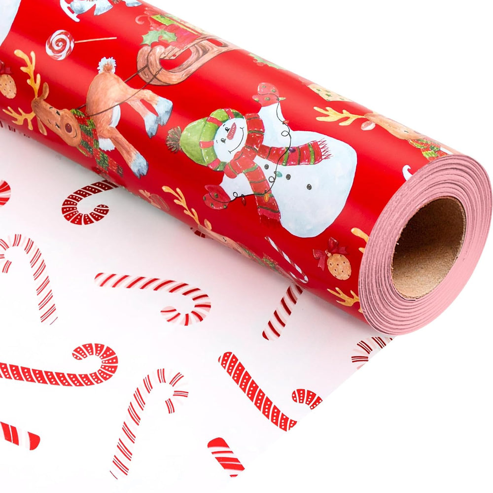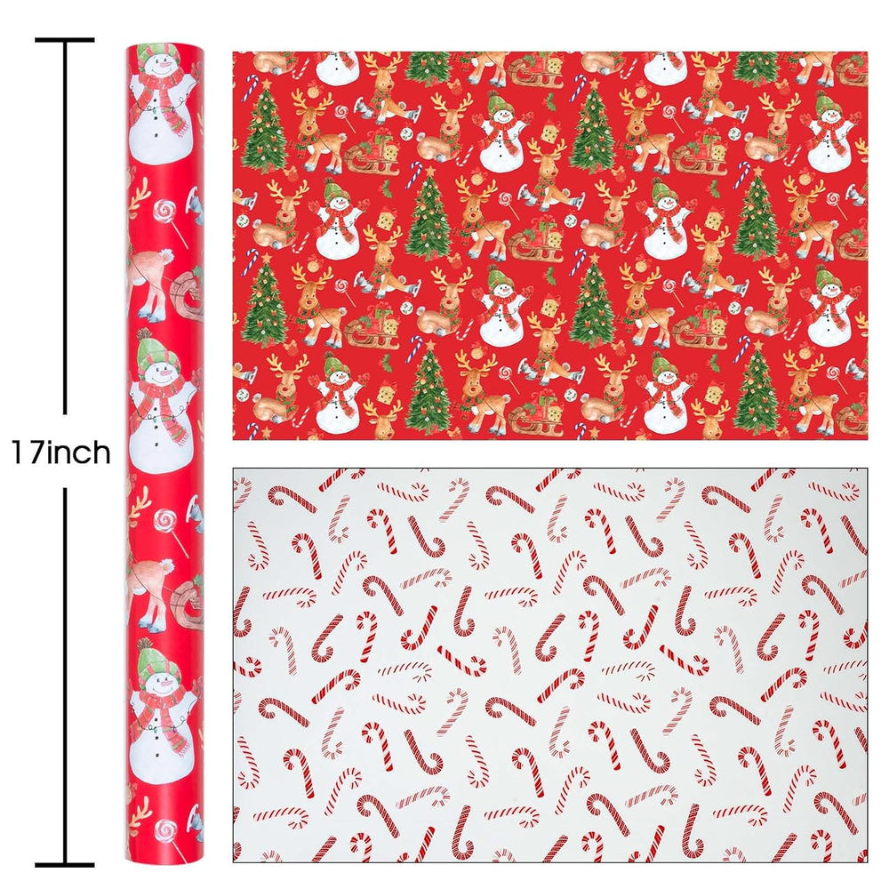 | Suitable Size: Each Wrapping Paper Roll Measures 17 Inches Wide And 33 Feet Long. Its Compact Size Makes It Easy To Store And Ideal For Wrapping Small To Medium-Sized Gifts. Please Confirm The Gift Size Before Ordering Elegant Design: This Wrapping Paper Has A Red Background, Printed With Christmas Elements Like Reindeer, Snowmen, Candy Cane And Christmas Trees, Full Of Festive Atmosphere, Perfect For Gift Wrapping High-Quality Materials: This Wrapping Paper Features High-Quality Paper With Appropriate Thickness, Resistant To Tearing, Print Is Clear, Suitable For Packaging Gift Boxes Of Various Shapes. Whether Folding Or Cutting, It Can Be Easily Accomplished Reversible Design: This Wrapping Paper Features A Double-Sided Design, Which Can Make Your Gifts Colorful. One Piece Of Wrapping Paper Allows You To Have Two Different Styles, Adding Radiance And Beauty To Your Gifts Occasion: While Perfect For Christmas, This Luxury Seasonal Gift Wrap Paper Is Also Great For Birthdays, Anniversaries, And Other Winter Celebrations. Its Elegant Design Makes It Suitable For All Occasions From Kids And Grown-Ups