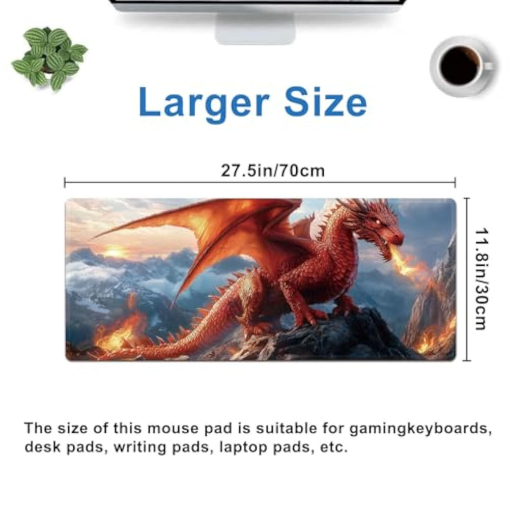 | ?Unique Design?:Add A Touch Of Creativity To Your Desk Red Dragon Pattern Large Mouse Pad. This Striking Design Not Only Enhances Your Workspace With A Unique Style But Also Creates A Visually Stimulating Environment That Boosts Focus And Productivity. | | ?Extra-Large Comfort Size?: Measuring 27.5 X 11.8 Inches, Our Extended Gaming Desk Mat Offers Ample Space For Smooth Mouse Movements And Efficient Keyboard Use. The Large Surface Area Ensures That You Have Enough Room To Move Freely Without Any Interruptions, Providing A Comfortable And Precise Control Experience During Intense Gaming Sessions Or Long Work Hours. | | ?High-Quality Non-Slip Rubber Base?: Our Mouse Pad Features A Premium Non-Slip Rubber Base That Firmly Adheres To Any Desk Surface, Preventing Unwanted Movement And Ensuring Stable Performance. The Reinforced Stitched Edges Prevent Fraying, Preserving The Pad’S Sleek Appearance And Durability Even With Daily Use, And Enhancing Your Overall Desk Experience. | | ?Waterproof And Easy To Clean?: Designed With A Waterproof Coating, This Desk Mat Effectively Repels Spills And Stains, Making It Easy To Clean And Maintain. Whether You’Re Working Late Nights Or Engaging In High-Energy Gaming, Simply Wipe Off Any Mess With A Damp Cloth To Keep Your Mouse Pad Looking Fresh And New. | | ?Versatile Gift Choice?: This Versatile Mouse Pad Serves Multiple Purposes—Use It As A Desk Mat, Laptop Pad, Or Gaming Mouse Pad. Its Stylish Design And Practical Features Make It An Excellent Gift For Gamers, Office Workers, And Anyone Looking To Enhance Their Workspace. Perfect For Birthdays, Holidays, Or As A Thoughtful Present To Yourself Or A Loved One. | |