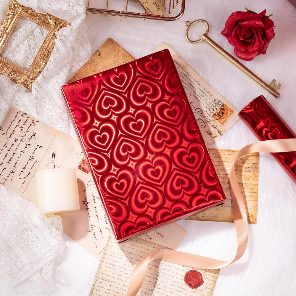 | ?Shiny Holographic Heart Design?Featuring A Bold Red Holographic Foil Surface With Deeply Embossed Layered Heart Patterns, This Romantic Gift Wrap Brings Eye-Catching Shine And Dimension To Every Package. ?Mini Roll?This 17 Inch × 32.8 Ft Roll Provides Plenty Of Coverage For Wrapping Several Medium And Large Gifts, Craft Projects, Party Favors, Or Decorative Displays. The Continuous Roll Format Makes It Easy To Measure, Cut, And Wrap Without Dealing With Folded Creases. ?Durable Foil Material?Made With Sturdy Holographic Foil Paper That Resists Tearing, Creasing, And Dulling During Wrapping. The Smooth Surface Folds Cleanly Around Corners While Maintaining Its Intense Shine, Ensuring Your Gifts Look Polished And Professionally Finished. ?Perfect For Romantic Occasions?Designed For Couples, Friends, Classmates, And Family Who Love Giving Thoughtful Gifts With A Personal Touch. Use It For Valentine Exchange Parties, Bridal Showers, Wedding Gifts, Engagement Surprises, Sweet-Sixteen Events, Or Any Moment You Want To Highlight Affection And Celebration. ?Versatile Decorative Use?Beyond Gift Wrapping, This Foil Paper Is Great For Diy Crafts, Cardmaking, Scrapbooking, Classroom Projects, Candy Bouquets, And Party Décor. Its Reflective Red Glow Enhances Dessert Tables, Balloon Displays, And Treat Boxes, Adding An Elegant Romantic Sparkle To Your Event Setup.