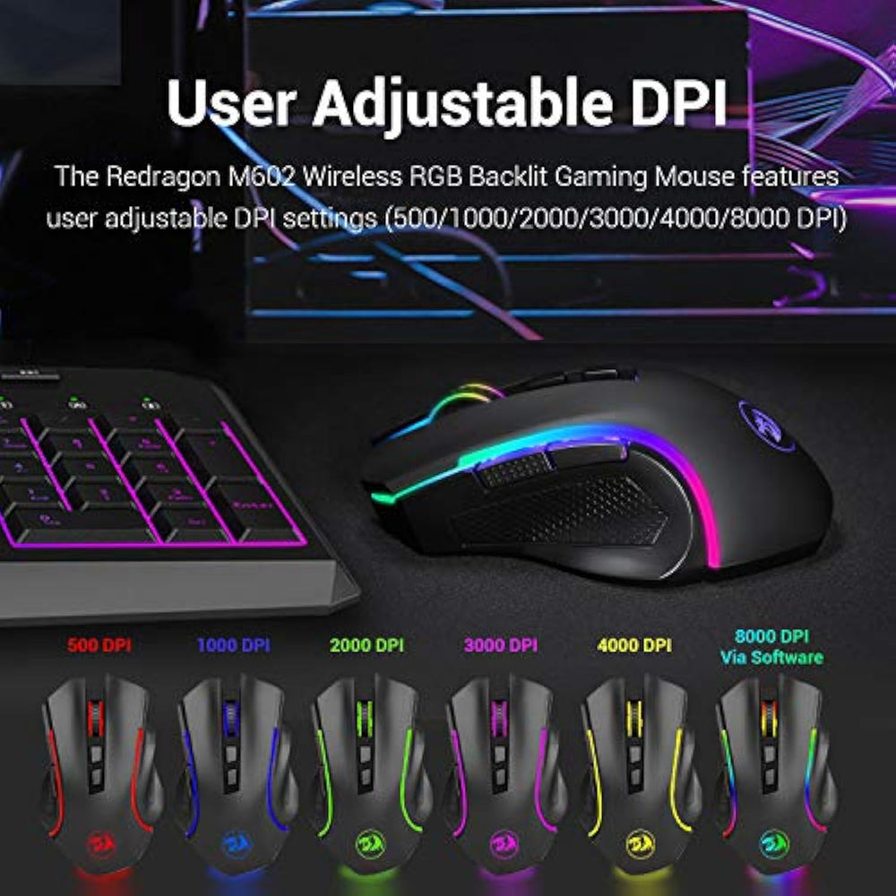 | ?Fully Programmable Gaming Mouse?- Redragon Wireless Gaming Mouse All buttons can be programmed with the driver and support macro editing. You can remap the buttons, assignment of complex macro functions, change RGB backlit effects, and adjust DPI (250-8000) to fit your different needs | | ?Enhance Your Gaming Immersion?UP to 9 RGB light effects can be chosen, you also can adjust backlit effects with 16.8 million color combinations by drivers to create your fancy gaming environment, and match your game style and desktop layout | | ?High-Precision Gaming Mouse?-The wireless mouse features adjustable DPI(250-8000) and 4 adjustable polling rates ( 125Hz/250Hz/500Hz/1000Hz), you can easily adjust the moving speed, and experience a smooth, fast response and accurate tracking gaming experience | | ?Powerful Battery Life?The rechargeable mouse has a long battery life between 35 hours (RGB on) and 70 hours (RGB off) on a single charge, providing you with nonstopping use. It will auto-sleep after 1 minute of inactivity for power saving. The wireless mouse gaming also can be used while charging | | ?Extreme Ergonomics?The mouse gaming with an ergonomic design and Skin-friendly material will provide you with a comfortable grip and soft touch, Effectively relieving fatigue during long-time gaming | |