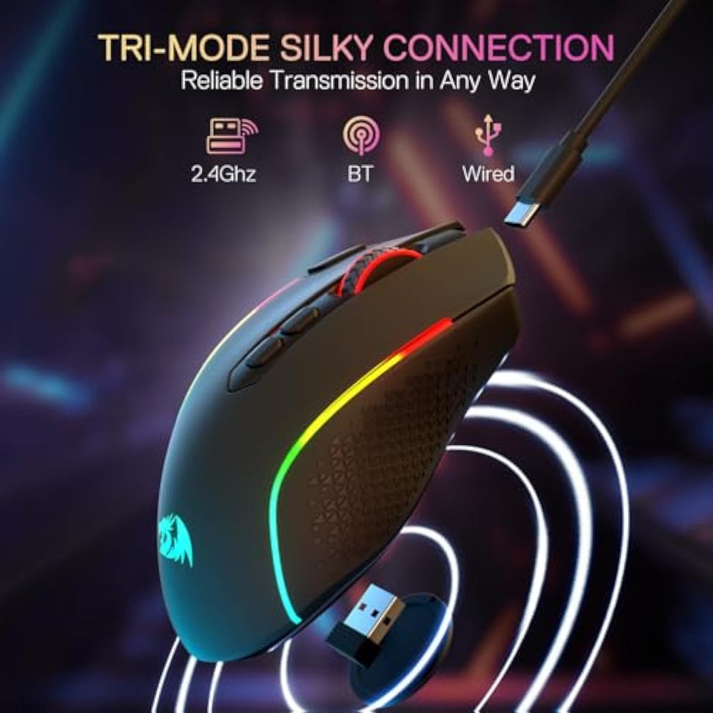 | Wireless for Boundless Winning - M810 gaming mouse features both wired and wireless options. Whether you prefer zero-lag wired connections or the convenience of BT, you're catered for | | Adjustable DPI to 12000 - Geared with 5 on-board DPI levels (400/800/1600/2400/3200) which allow your mouse movements to be registered to each pinpoint location. 5 DPI levels are free to DIY with software, for gamers to switch swiftly in game | | Easy Keybinding with Macro - All 8 programmable buttons are all editable with customizable tactical keybinds in whatever game or work you are engaging. 1 rapid fire + 2 side macro buttons offer you a better gaming and working experience | | Ultra Long-lasting Core - Equipped with the PAW3311 Optical Pixart sensor, the mouse consumption is further optimized with 1000Hz Polling Rate in dual mode. Rechargeable battery keeps the mouse working up to 188 hours at maximum (rgb off) | | Adjustable True Color - With Redragon Pro driver, DIY endless style like dynamic streaming, breathing, waving. The game closely linked with various lighting modes makes your room full of competitive vibe | |