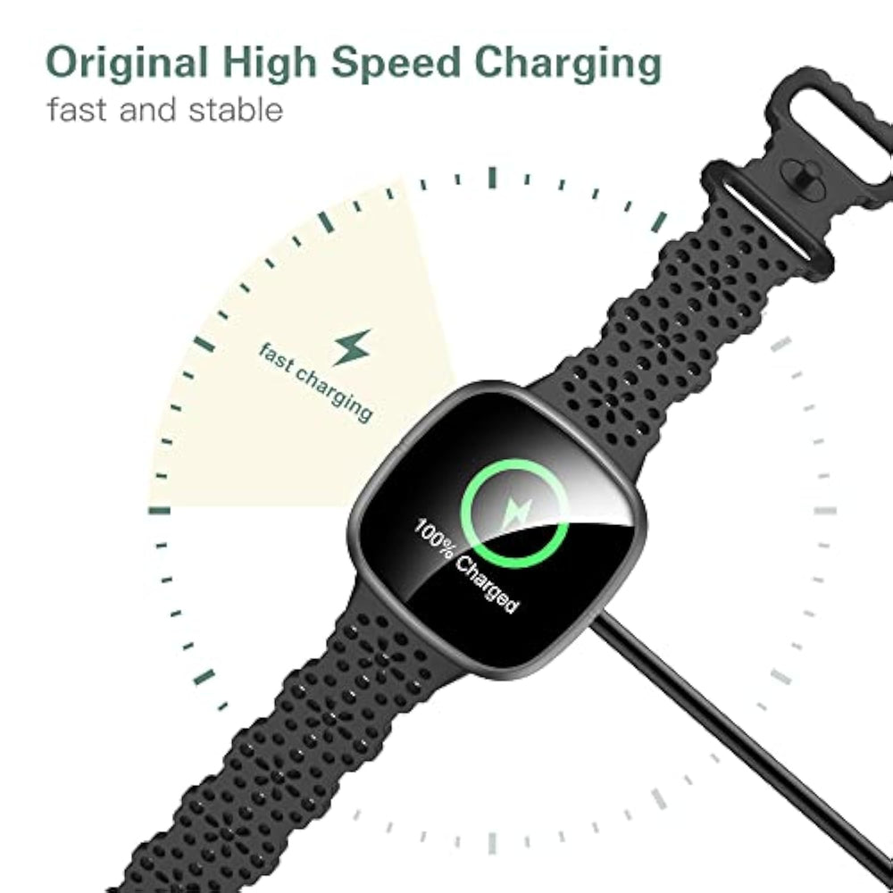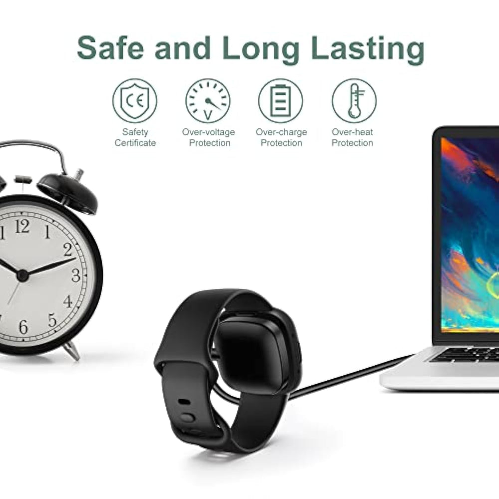 | Replacement Charging Cables Are Specially Designed For Versa 4/Sense 2/Versa 3/Sense. | | Passed Thousands Of Qualified Tests, It Can Provide A Fast Charging Speed And Stable Charging Environment. | | Made Of Abs Plastic And Tpe Cable, Lightweight, Stable And Durable, Giving You A Good Charging Experience. | | 3.3Ft Long Charging Cable Provides You Convenient Use And The Flexibility You Need. | | Just Simply Plug Your Smartwatch Into Your Laptop, Power Bank, Wall Charger Or Car Charger To Charge. | | 2 Pack Tested Charging Cables For Versa 4/Sense 2/Versa 3/Sense. | |