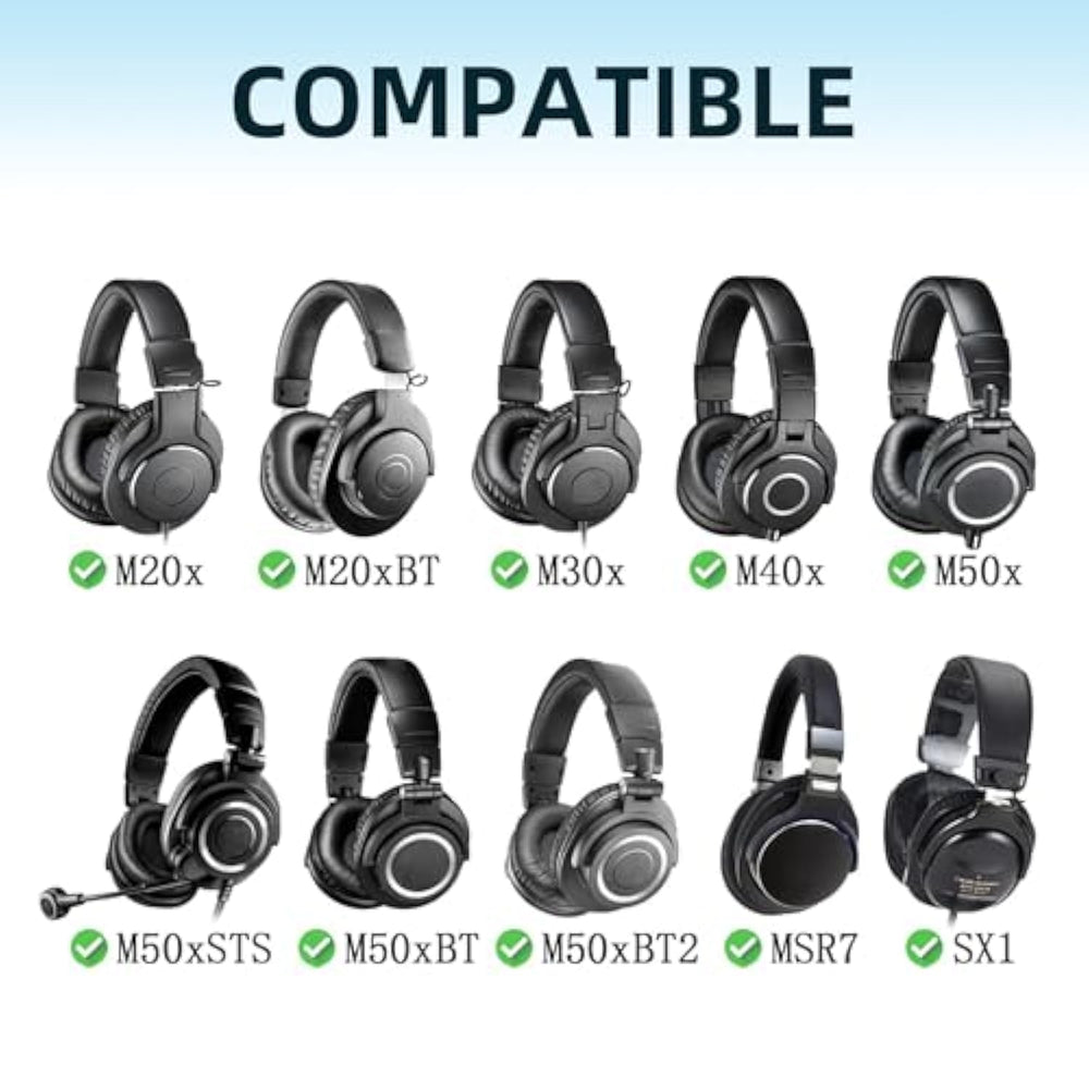 | ?Compatibility? Fit Perfectly On M50X /M50Xbt /M50Xsts/ M50Rd /M40X /M30X /M20Xbt /M20X /Sx1 /Msr7 Monitor Headphones. Please Confirm Your Headphone Model Number Before Purchg. | | ?Rugged Durability?The Ear Cushions Are Made Of Mesh Fabric And High-Density Foam, Breathable, Non-Slip And Durable, The Thickened Material Is Durable And Soft To The Touch, Giving You Comfort And Excellent Noise Isolation. | | ?Comfortable Experience? Made Of High-Density Memory Foam, Soft And Comfortable, Effectively Dispersing Ear Pressure, All-Weather Wear, Excellent Noise Isolation Ability, Effectively Blocking External Noise, Even In A Noisy Environment Can Also Enjoy Pure Sound Quality. | | ?Time To Replace Your Old Earbuds?Why Not Give Your Earbuds A New Look Don'T Worry About Not Being Able To Install Them, We Provide An Installation Tutorial! | | ?Simple And Easy To Install? We Will Provide You With An Installation Video And Installation Instructions So That You Can Easily Replace The Ear Cushions, Making The Entire Installation Process Quick And Easy (Usually Only Takes 5 Minutes). | |