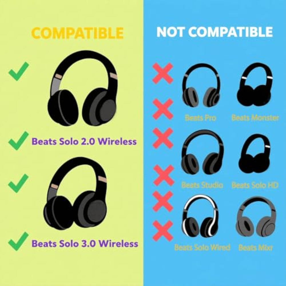| Compatible With Beats Solo2 Solo3 Wireless: Specially Designed To Fit Beats Solo2 And Solo3 Wireless Perfectly. Not Compatible With Other Beats Models And Beats Solo Wired. | | Soft Premium Protein Leather: Made With High-Quality Protein Leather For A Smooth, Skin-Friendly Feel That Enhances Comfort During Long Listening Sessions. | | Enhanced Comfort Noise Isolation: Upgraded Memory Foam Padding Gently Conforms To Your Ears, Improving Sound Isolation And Overall Audio Experience. | | Durable Long-Lasting: Reinforced Stitching And Premium Materials Provide Long-Term Durability, Resisting Wear And Tear From Daily Use. | | Easy Installation With Tools Included: Comes With Everything Needed For A Hassle-Free Installation—Just Peel, Stick, And Snap Into Place In Minutes. Note: Please Clean Up The Residual Glue On The Headphones Before Attaching The New Ear Pads. | |